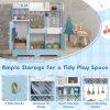 Smart Storage Options: After the feast is over, the toy kitchen hides every accessory behind 4 cabinet doors while a dish rack, spice shelf, and 5 hooks keep pots, pans, and play food neatly displayed. Cleanup becomes part of the game, teaching toddlers organization skills and ensuring the pretend coffee station is always ready for the next rush of imaginary customers.