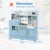 Mini Barista & Chef Combo: This wooden play kitchen lets junior chefs fire up the range hood, simmer on a 2-burner stove, bake in the oven, zap snacks in the microwave, wash veggies at the faucet sink, brew pretend lattes at the coffee station with its simulated clock, and drop "ice" from the dispenser for ultra-immersive fun. Every knob clicks and turns, giving the toy kitchen play set an authentic feel that keeps kids engaged for hours of screen-free role-play.