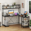● Perfect Working Spot: Along with a spacious L-shaped tabletop, this computer PC desk offers a 2-position adjustable hutch, headphone hook, CPU stand, and storage shelves for an organized workspace. Plus, 2 cable management holes keep wires tidy and clutter-free.