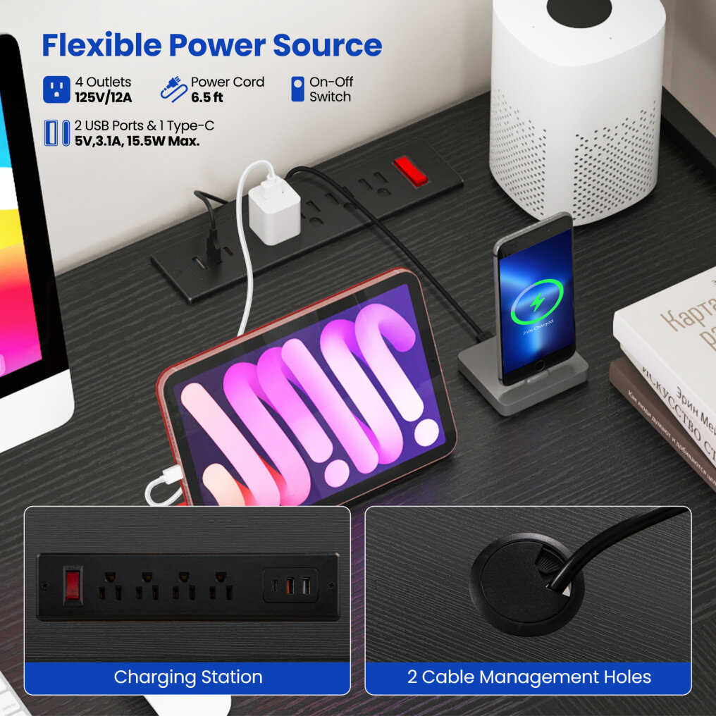 ● Functional Power Strip and Monitor Stand: The computer workstation comes with 4 AC outlets, 2 USB ports and 1 type-C port that provide multiple charging choices for your devices. Besides, the removable monitor stand raises your screen to eye level, thus to reduce neck strain.