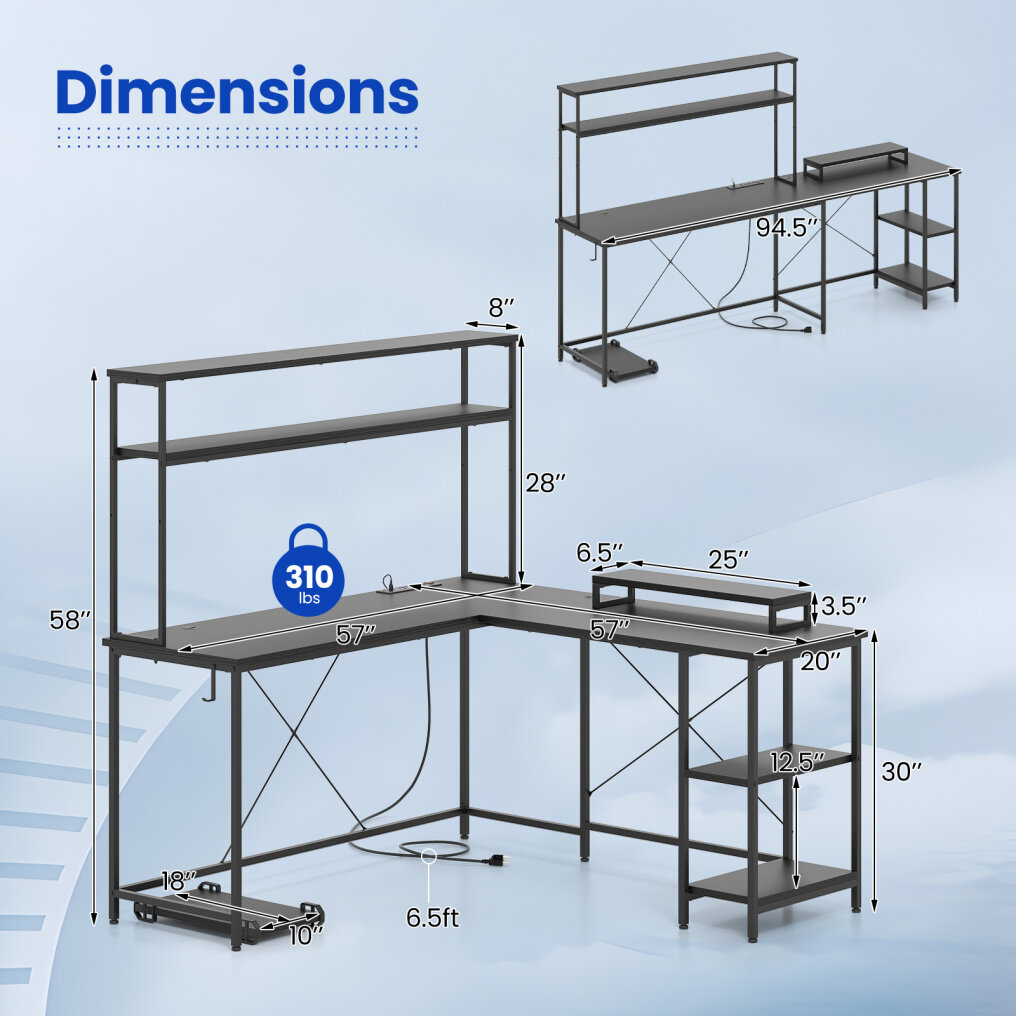 ● Reversible Design: The L-shaped gaming desk can be set up as a long straight design, which allows you to customize the layout to fit your space. Ideal for gaming, studying or working, this home office computer desk caters to your needs.