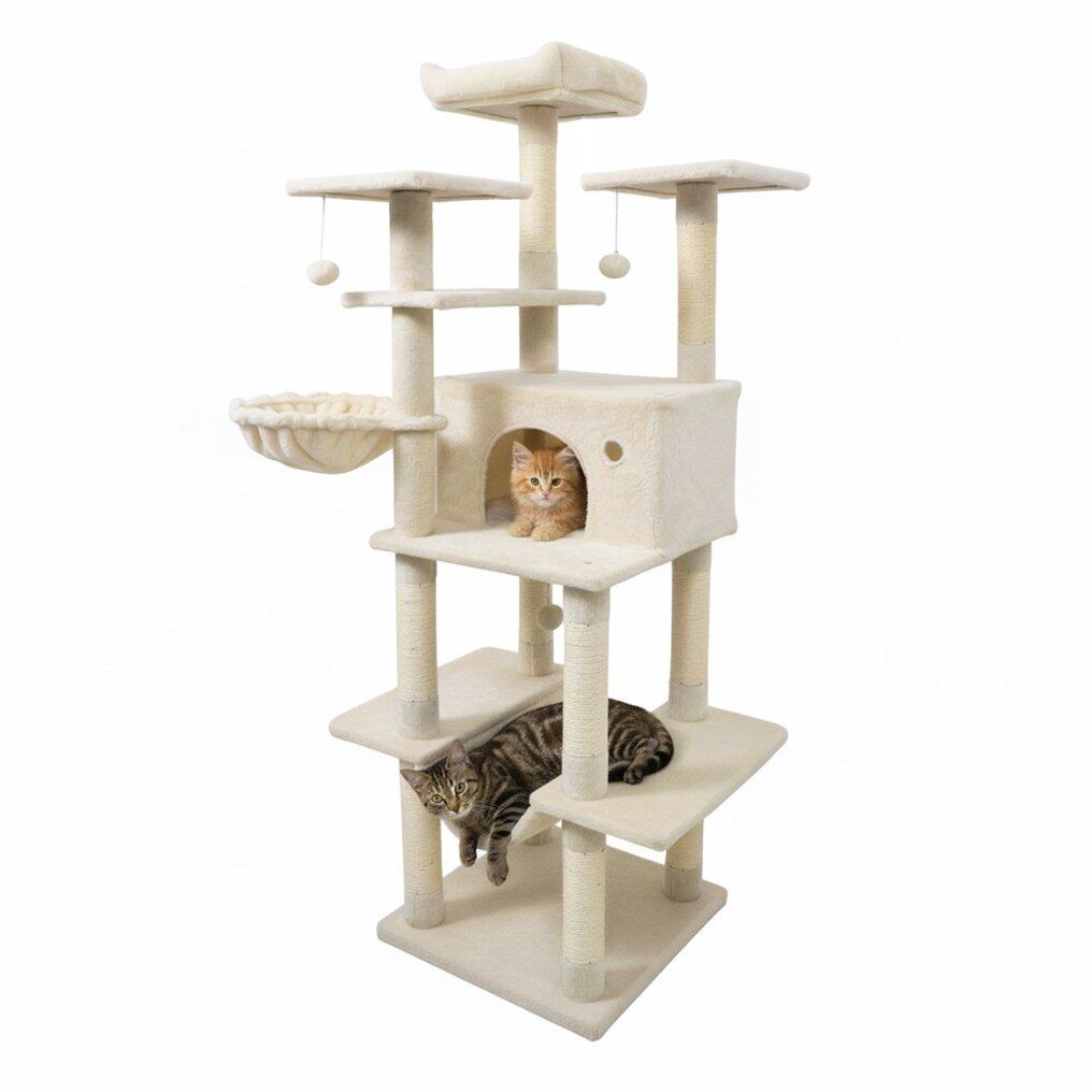 Large Cat Tree for Indoor Cats 63" Tall Cat Tower-Beige