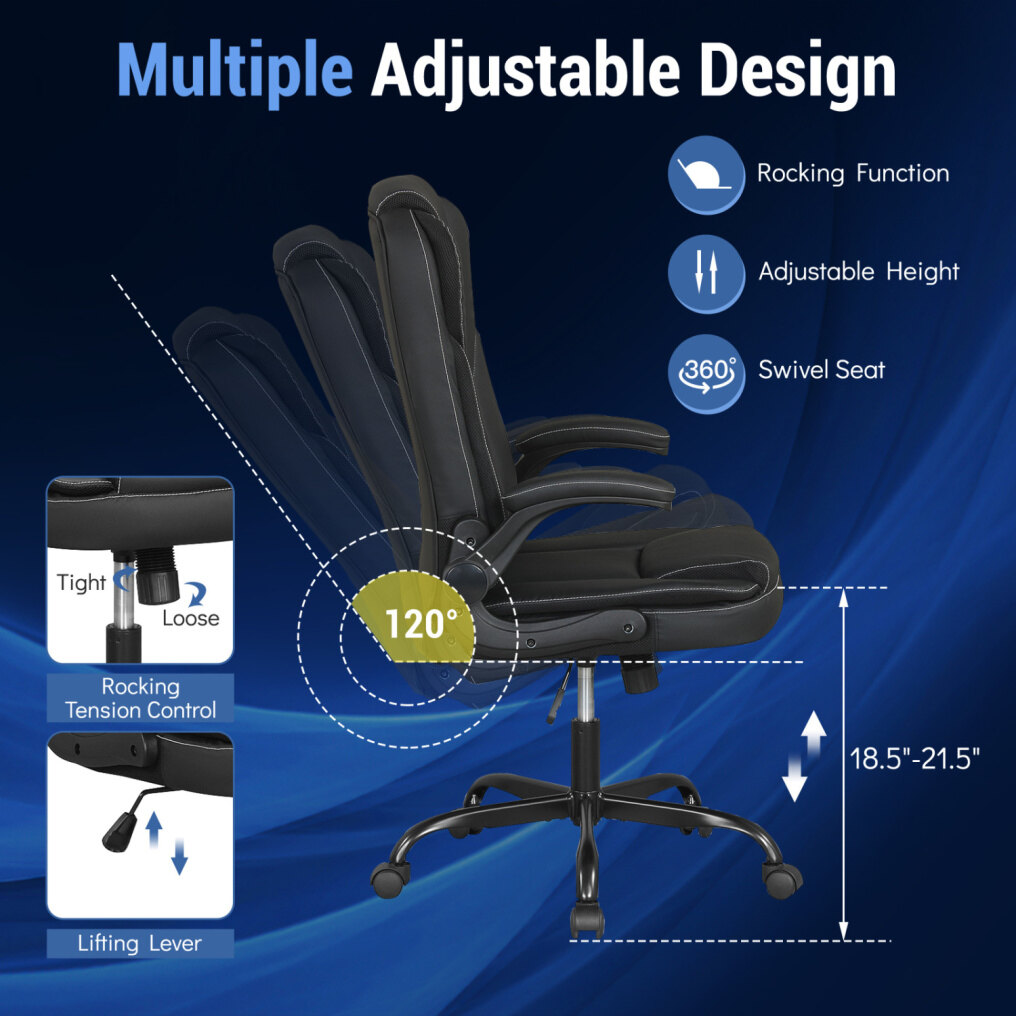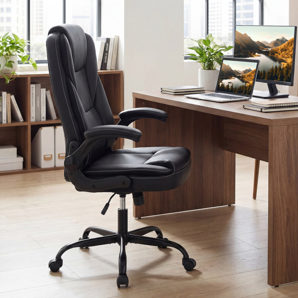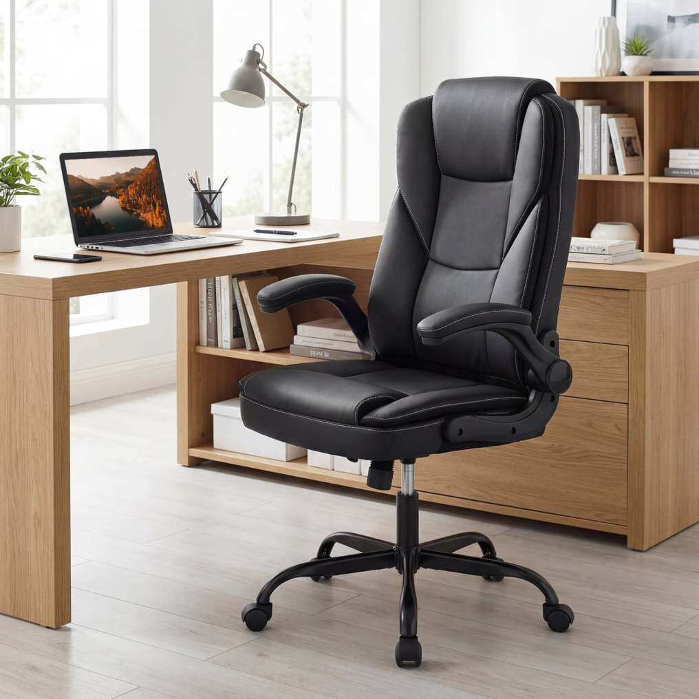 ● Leather Office Chair: Upholstered in premium PU leather, this executive chair ensures durability and lasting coziness, making it ideal for long hours of focused work. Plus, the high-density sponge padding boasts a perfect balance of softness and support.