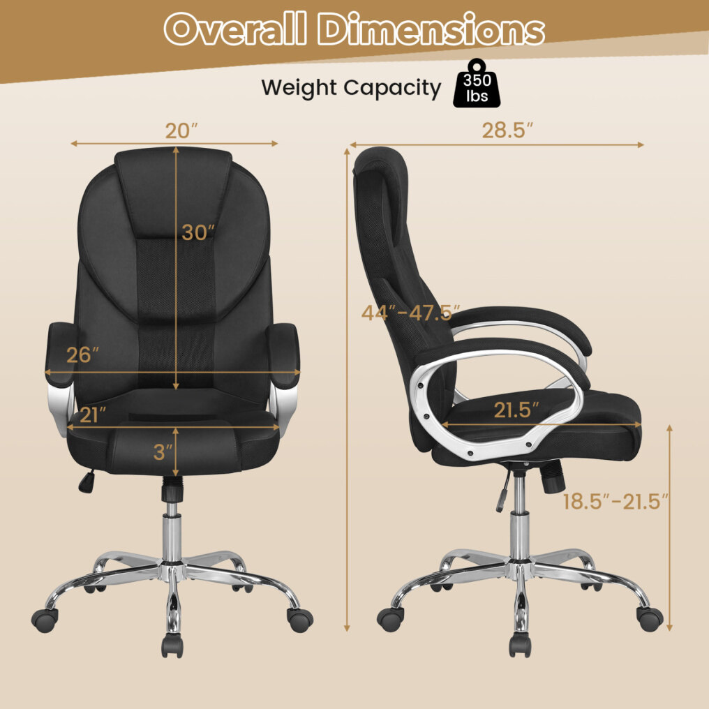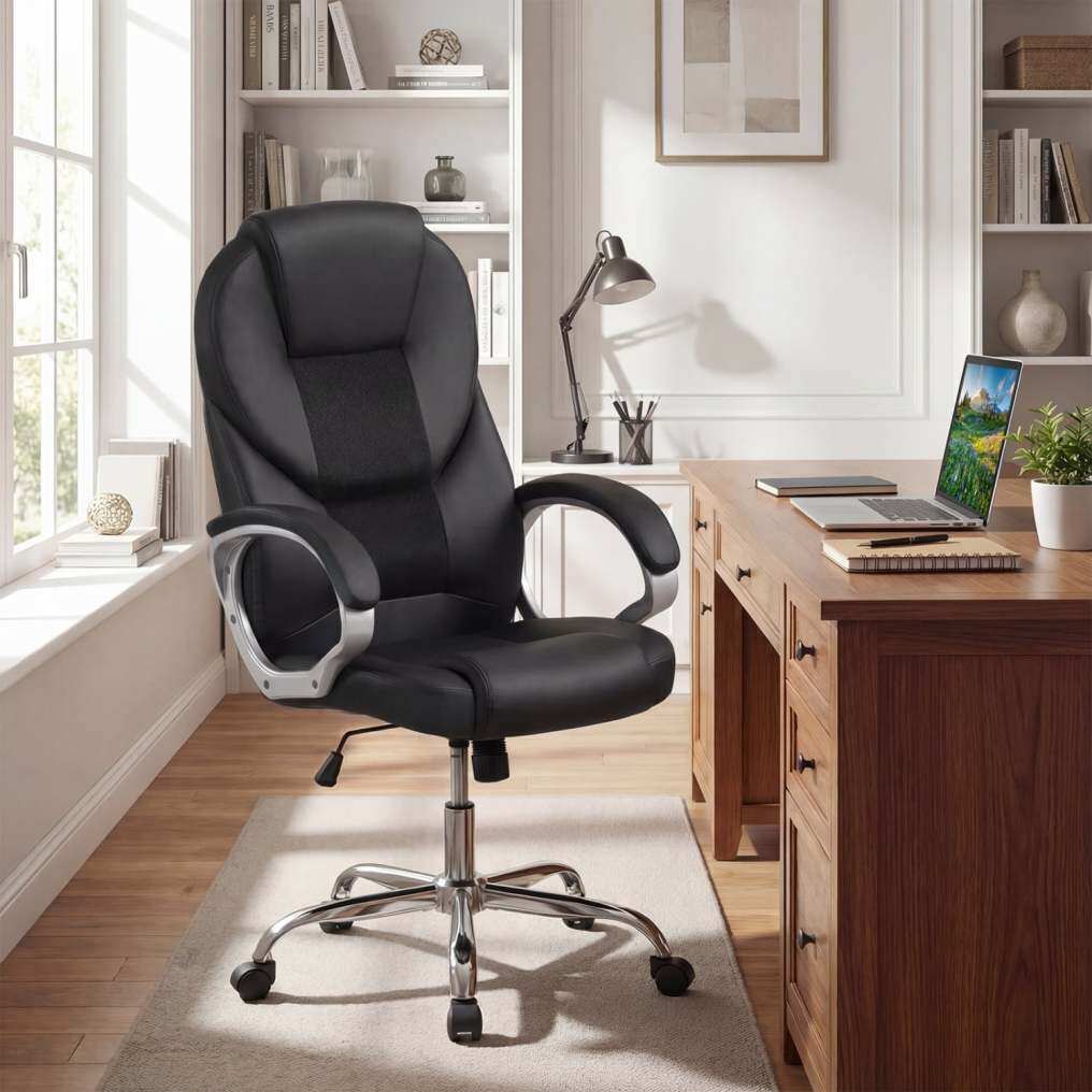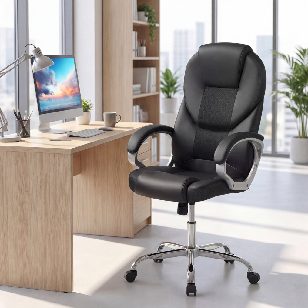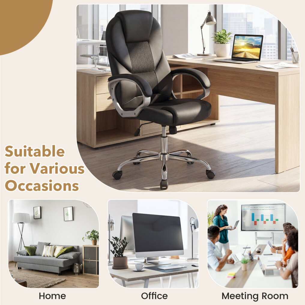 ● Ergonomic Design: This executive chair features rocking function that lets you gently sway back for a relaxing break or sit upright for focused work. Additionally, the contoured backrest and padded armrests enhance overall comfort throughout the day.