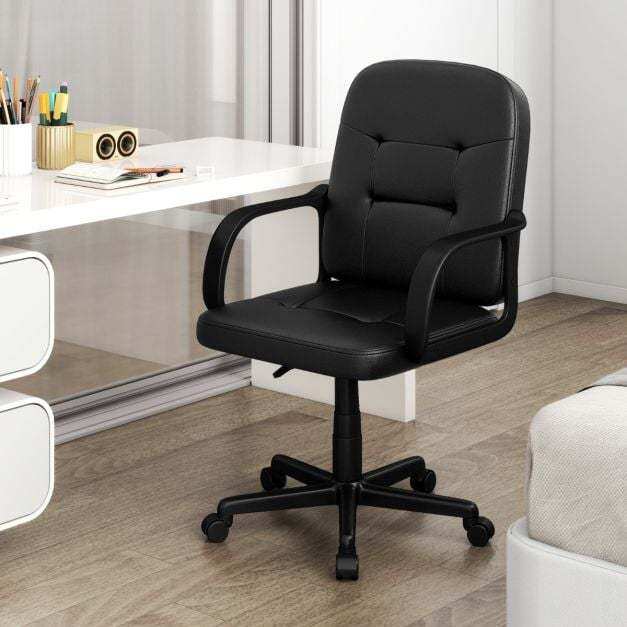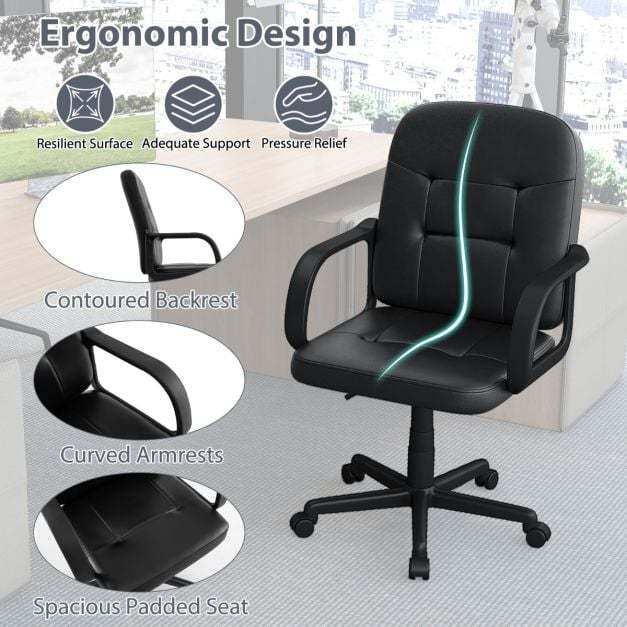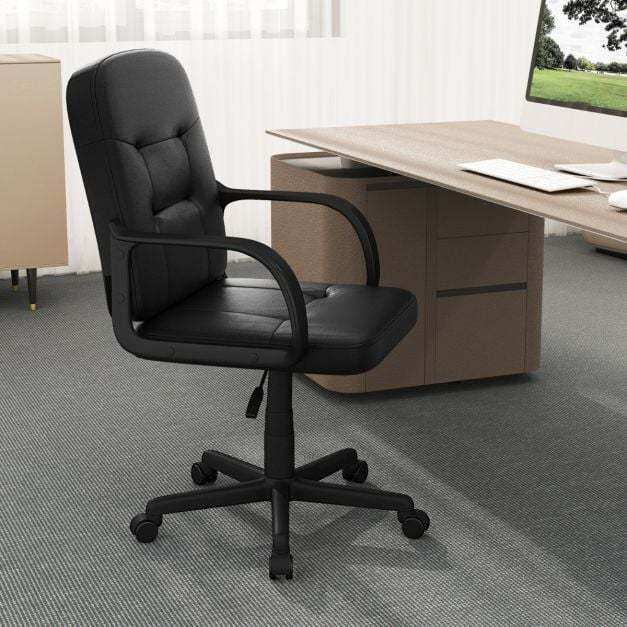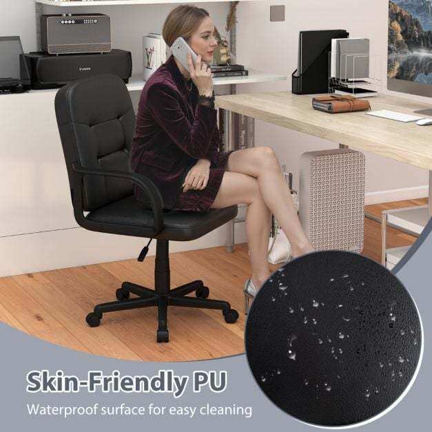 Premium Upholstery: Experience unparalleled comfort with the soft-padded office chair, wrapped in high-quality PU leather for a skin-friendly and stain-resistant seating solution. Adorned with a tufted design for elegance and filled with high-density sponge, this office chair combines style with comfort, making it an ideal addition to your workspace.