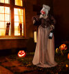 ● Gruesome Sounds and Lights: The talking zombie maid haunts with eerie sounds that add a profound sense of dread, ideal for creating a horrifying soundscape that complements her fearsome, LED red-eyed stare.