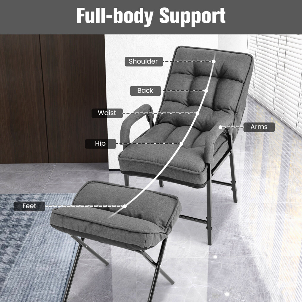 ● Armchair & Ottoman Set: Coming with an armchair and an ottoman, the soft chair set is great for leisure time. The chair and footrest provides full-body support for the shoulder, back, waist, arms, hip and feet. By the way, the footrest stool is foldable.