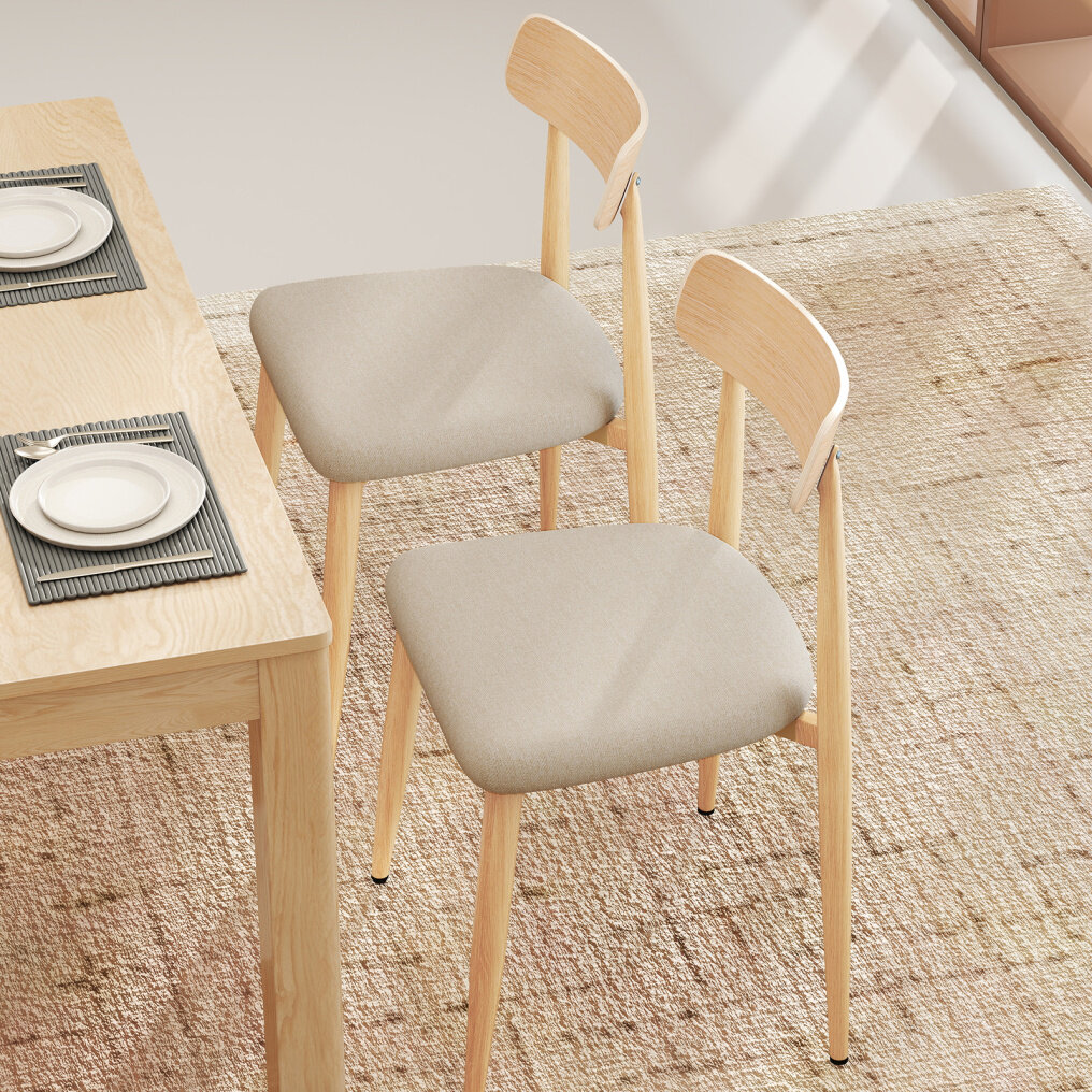 ● Versatile Use: Adorn your interiors with these stylish chairs that boast metal legs with wood grain heat transform finishes, offering the charm of wood with the strength of metal. They are perfect for dining rooms, study areas, or as supplementary seating for special occasions.