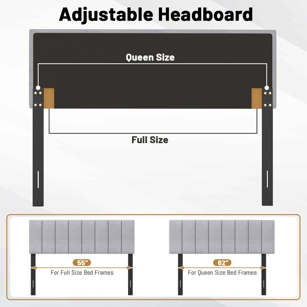 ● Adjustable Width Fits Full/Queen Size Bed: There are 2 optional leg mounting holes on the back of the headboard, making it convenient to adjust the width from 62" to 55". The adjustable width design makes the headboard either suitable for full-size or queen-size bed frames.