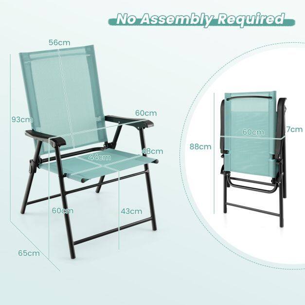 【Dimensions & Assembly】Unfolding dimension of each chair: 65 x 60 x 93 cm (L x W x H), folding dimension of each chair: 88 x 60 x 7 cm. No need to assemble to save time.