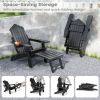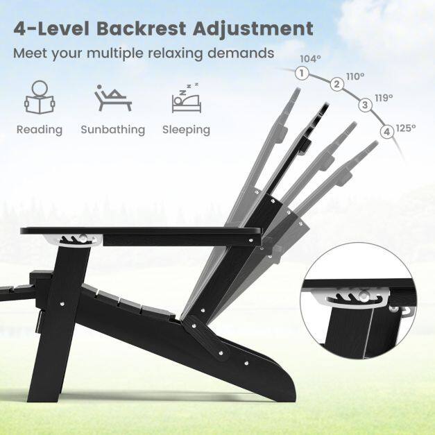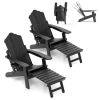 Featuring a 4-level adjustable backrest, these lounge chairs allow you to comfortably read, sunbath, and nap. Made from premium all-weather HIPS material and reinforced with stainless steel screws, the Adirondack chair stands against all climatic conditions, ensuring durability and low maintenance. The cozy seat includes a rotatory cupholder for your drinks or gadgets, enhancing its utility. With quick-folding design and retractable footrest, the oversized chair is space-efficient and easy to store and move. Elevate your backyard or patio area with this stylish and functional Adirondack chair, a perfect blend of comfort and convenience for any home.