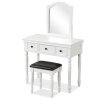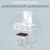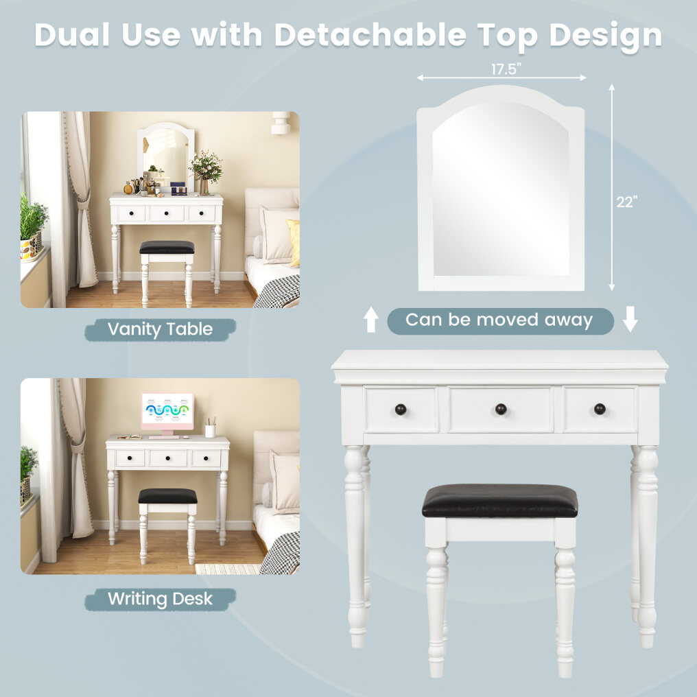 Makeup Vanity Table and Stool Set with Detachable Mirror and 3 Drawers Storage-White