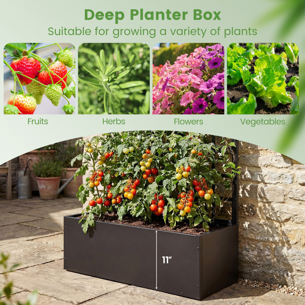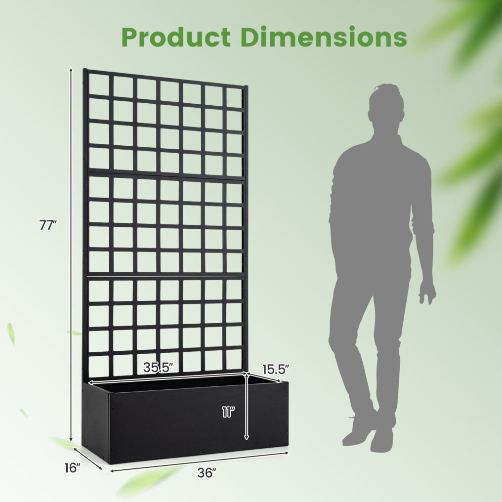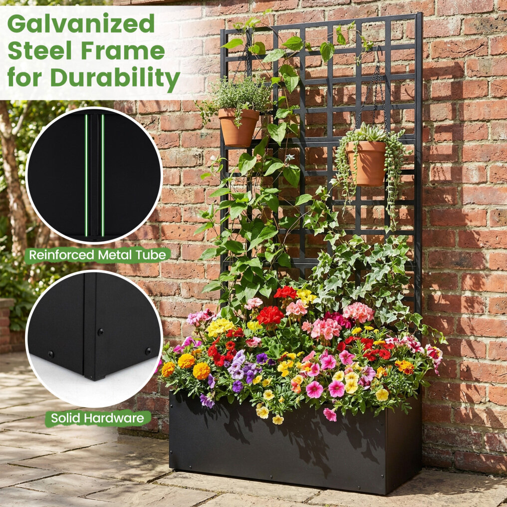 ● Enduring Galvanized Steel Frame: Built with a galvanized steel frame, this vertical planter with trellis is designed for reliable stability and long-term durability. Strengthened metal tube helps the planter box support loads up to 175 lbs.