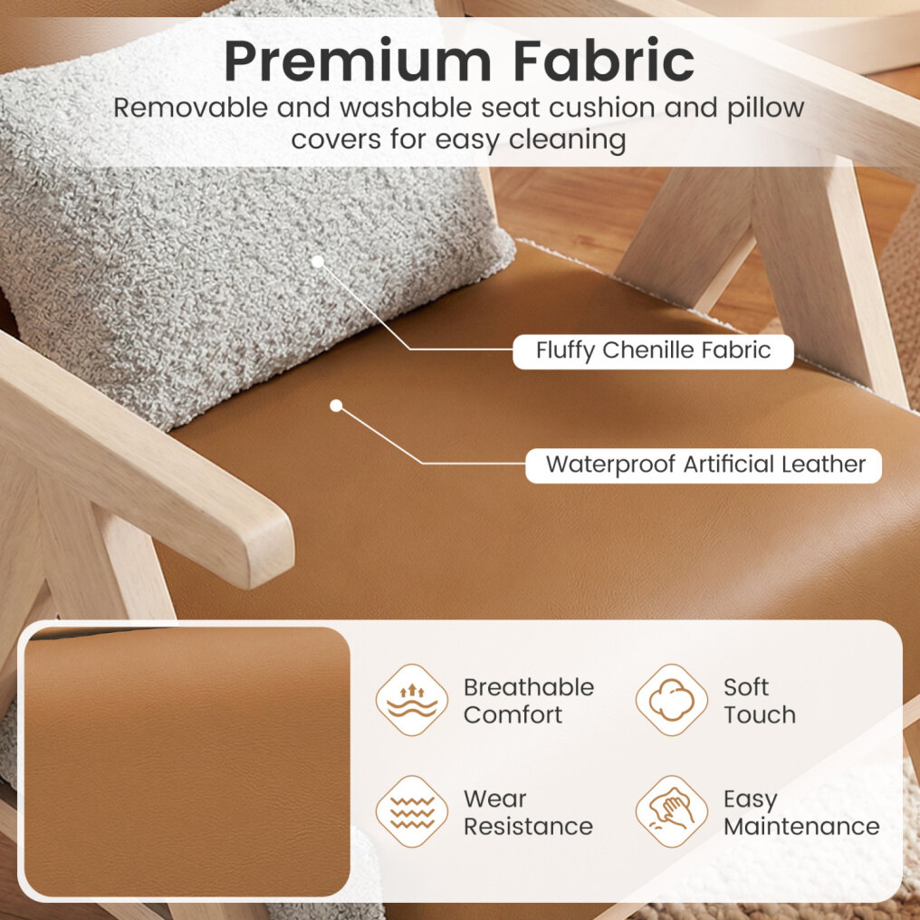● Luxurious Materials: This accent chair combines fluffy chenille fabric and waterproof artificial leather for breathable comfort and soft touch. This stylish blend offers a plush, inviting ambience to your space.