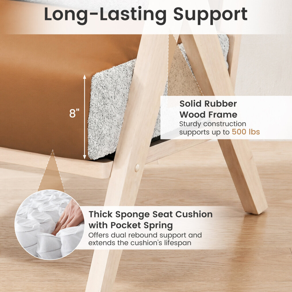 ● Long-Lasting Support: This sofa chair includes the 8"/20 cm thick sponge seat cushion with built-in pocket springs, offering a responsive dual-rebound experience. The design also extends the cushion's lifespan while ensuring you stay comfortable.