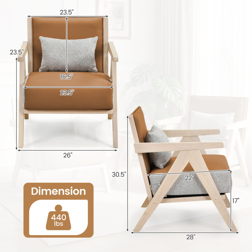 ● Heavy-Duty Structure: The solid rubber wood frame ensures durability and stability, supporting up to 440 lbs. This robust construction and splinter-free surface let you enjoy your armchair with confidence.