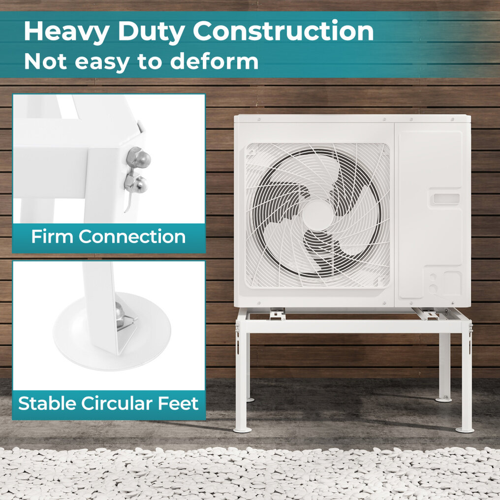 ● Flexible Adjustment: Featuring adjustable width (11.8"-18.1"), length (15.7"-27.4") and height (12.6"-16.1"), this mini split ground stand is crafted to adapt seamlessly to different unit sizes. Designed for versatility, it is compatible with mini-split ACs from 9000-36000BTU.