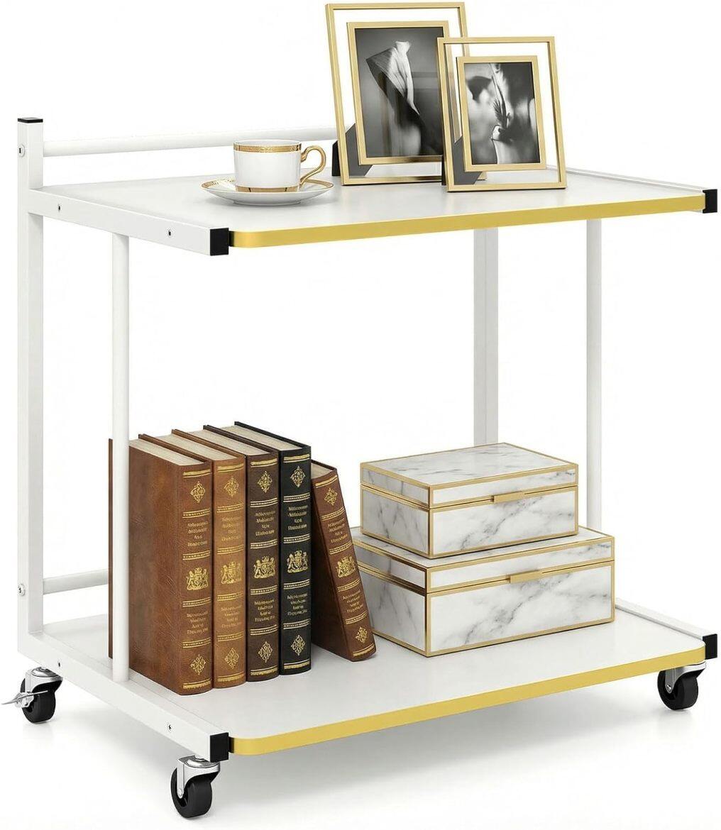● Gold-Touched Luxury: Golden-trimmed edges and softly rounded corners give the 2-tier storage cart a deluxe, hotel-suite vibe while protecting shins and upholstery. The clean lines and sleek finish elevate any decoration style without overwhelming it.