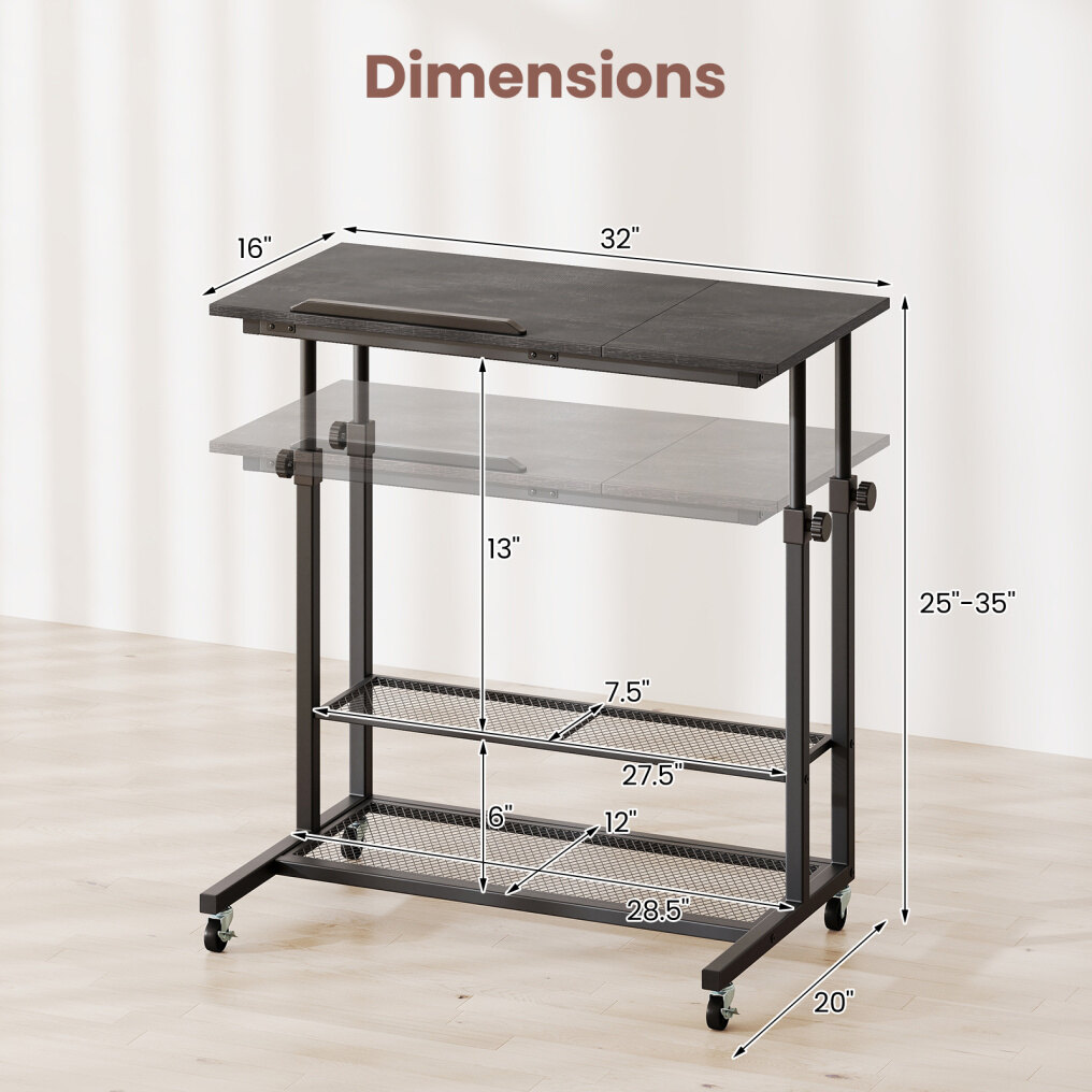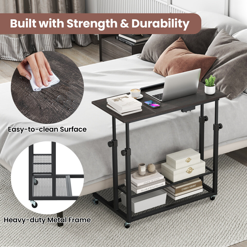 ● Flexible Height Adjustment: Tailor this mobile stand-up desk to your comfort with its height adjustment from 25" to 35". Equipped with easy-to-use rotary knobs, this rolling sofa side table provides a seamless transition between sitting and standing positions.