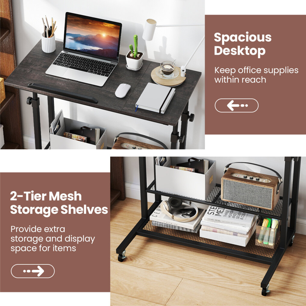 ● Built with Strength and Durability: Crafted from heavy-duty metal frame, the height adjustable computer desk presents better sturdiness and stability. Together with thickened boards, the rolling laptop desk is a reliable addition to your living space.