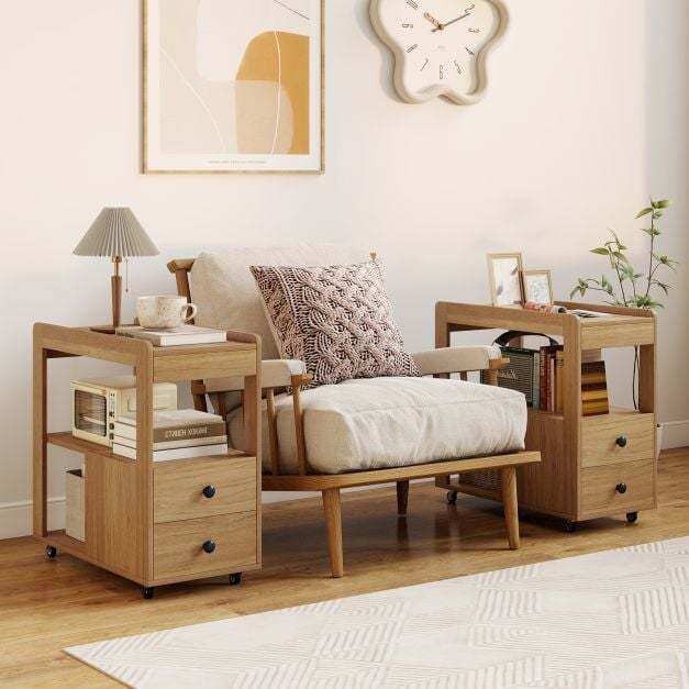 Triple the Storage, Double the Drawers: Imagine having a 3-tier open storage space and 2 drawers all in one end table! This versatile piece keeps your essentials organized and within reach, making it the perfect addition to any room.