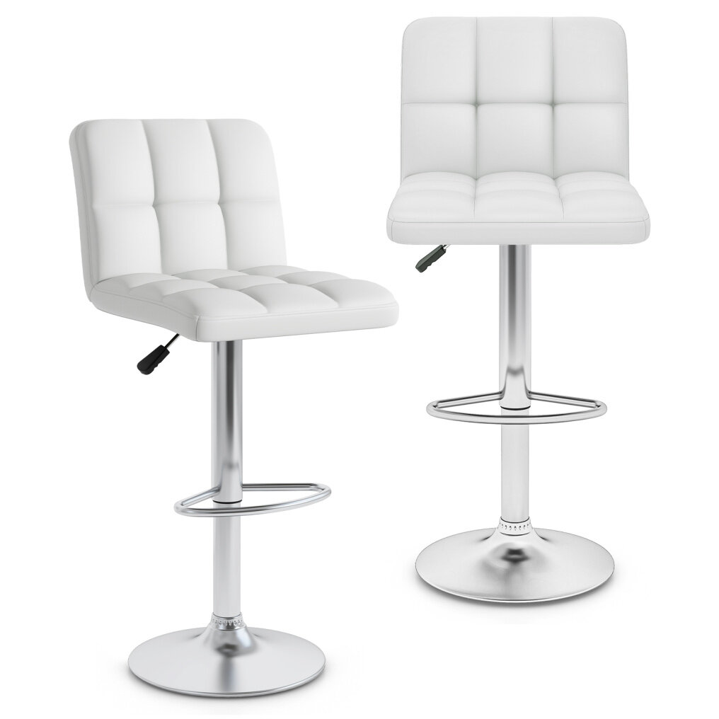 Modern Bat Stools Set of 2 with Back and Heavy-duty Metal Base and Footrest-White