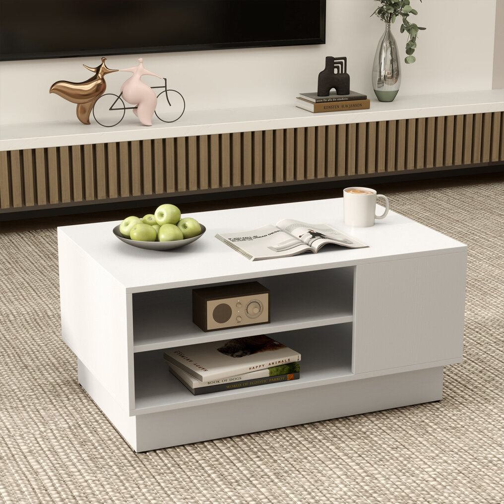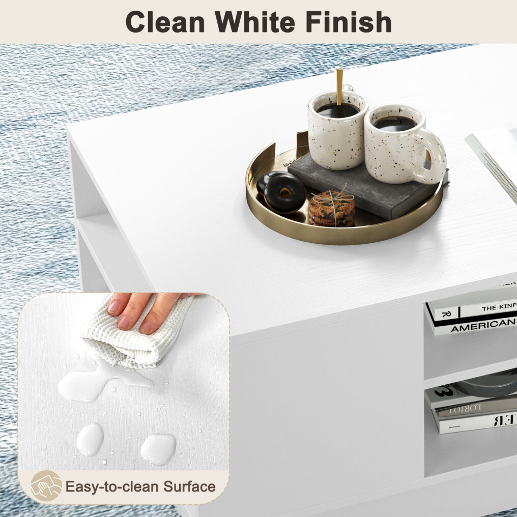 ● Contemporary Style: With simple lines and a clean white finish, this modern coffee table easily complements any modern living space. Its contemporary flair makes it an outstanding centerpiece that elevates the style quotient of your home decoration.