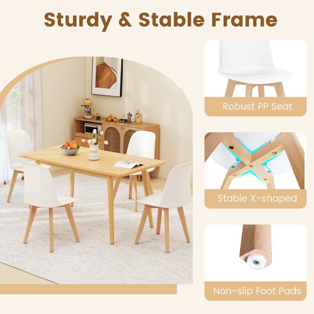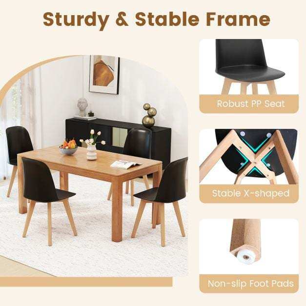 ● Sturdy and Stable Frame: These kitchen chairs combine sturdy wooden legs with a robust PP seat and backrest, which can load up to 330 lbs. Plus, the stable X-shaped structure and non-slip foot pads add extra stability to the entire frame.