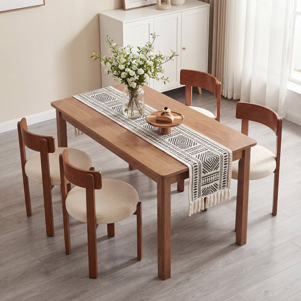 Modern Dining Chairs Set of 4 with Solid Rubber Wood Legs-Brown
