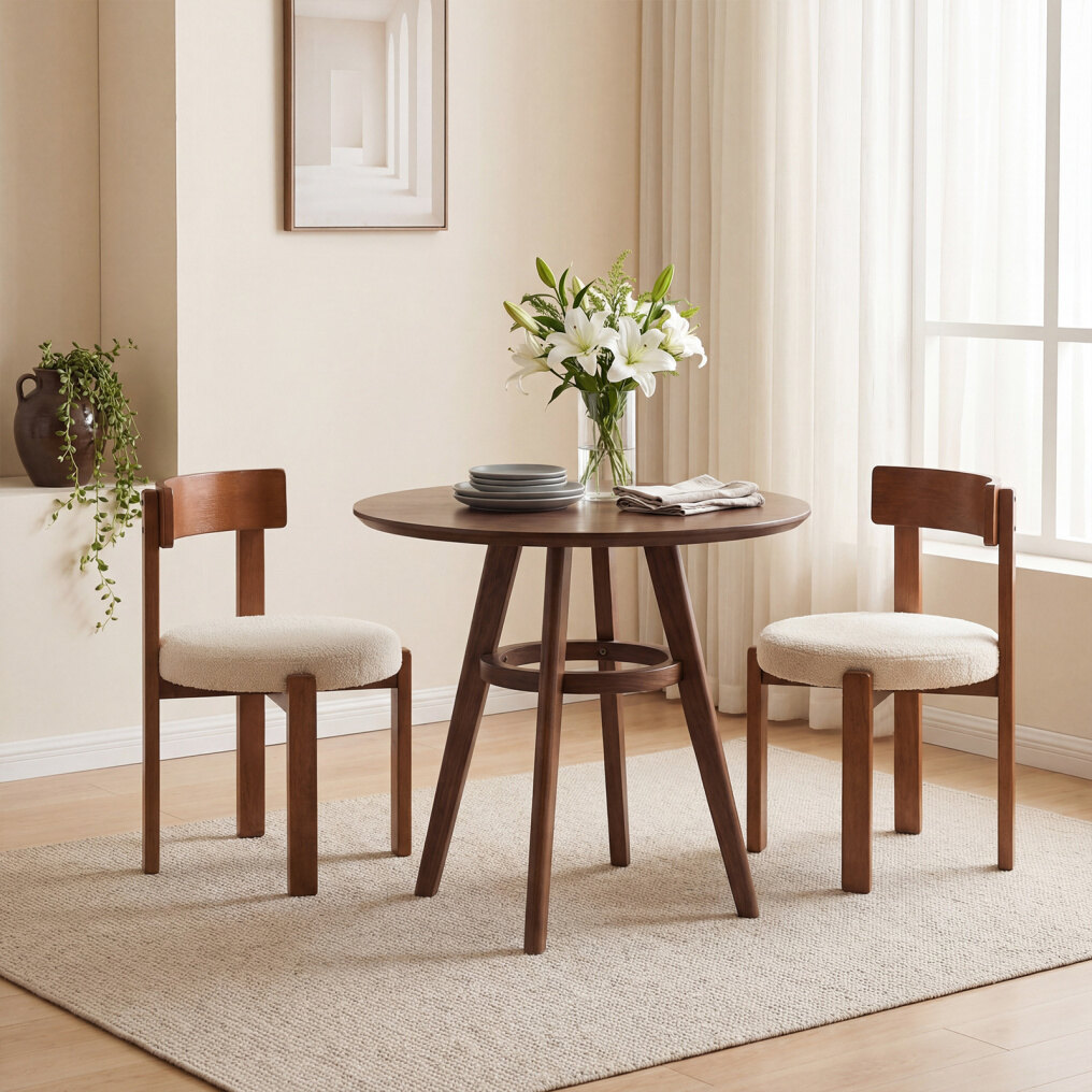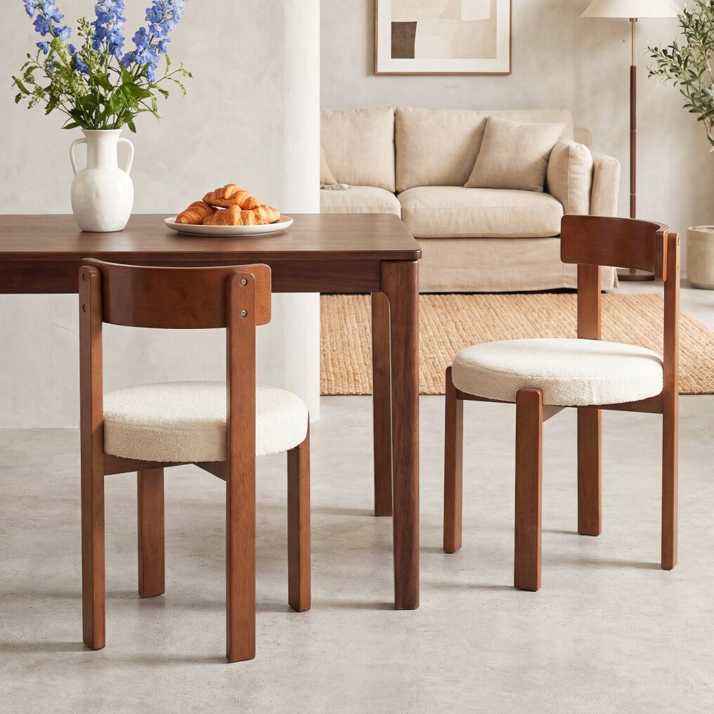 Modern Style and Wide Use: Featuring wooden frame and beige teddy fleece, the side tables bring a touch of modern charm to your dining space. These chairs can fit well with various decoration styles. They are suitable for your kitchen, dining room, restaurant, and more.