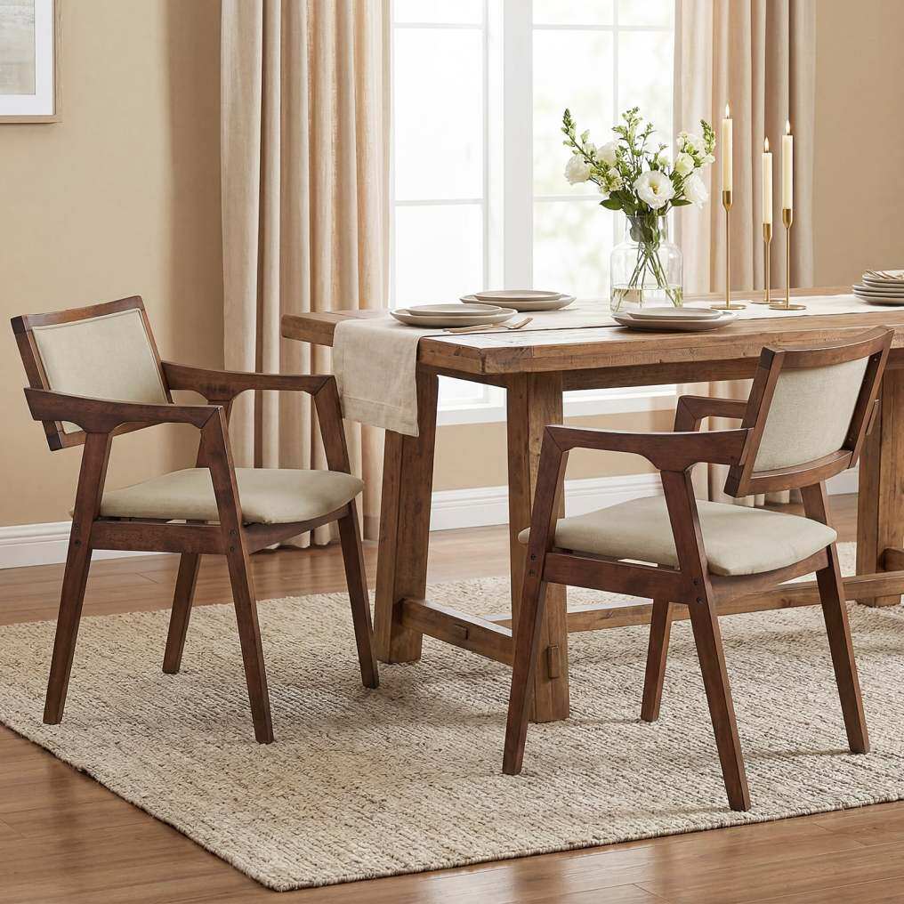 ● Ergonomic Support for Relaxation: The kitchen chairs provide ergonomic support with a curved backrest and a contoured seat that fits the natural shape of the body. Slightly curved armrests enhance relaxation, offering full support during meals or extended conversations.