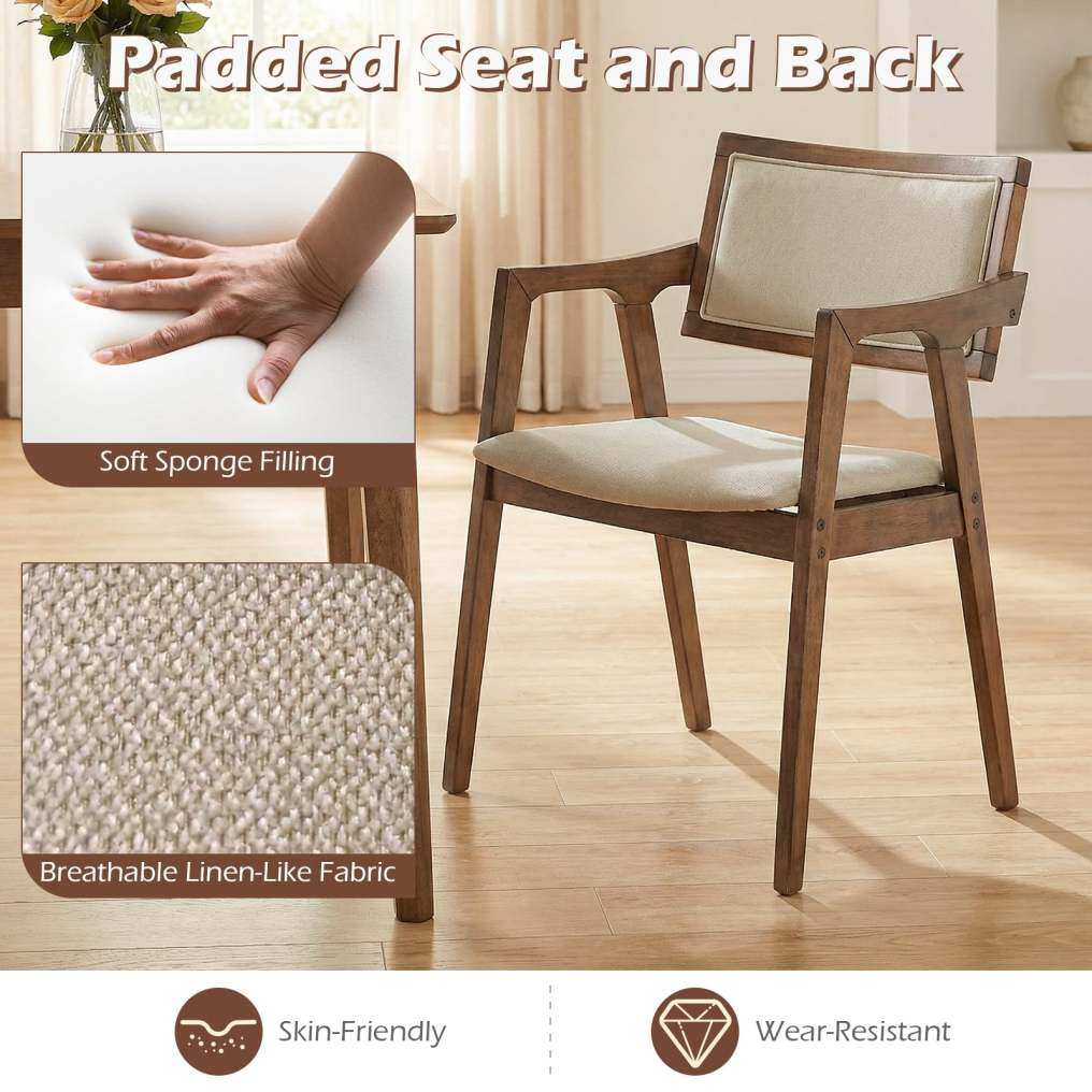 ● Comfortable Upholstered Design: Each side chair boasts a padded seat and back filled with soft sponge, wrapped in breathable, linen-like fabric that is both skin-friendly and wear-resistant. The upholstery enhances comfort for prolonged seating.