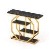 ● Stylish and Modern Sofa Table: With its stylish geometric appearance complemented by a sophisticated faux marble tabletop, this sofa table behind the couch brings a touch of minimalist artistry to your interior decoration. Its aesthetic appeal makes it a focal point in your room, seamlessly blending functionality with artistic charm.