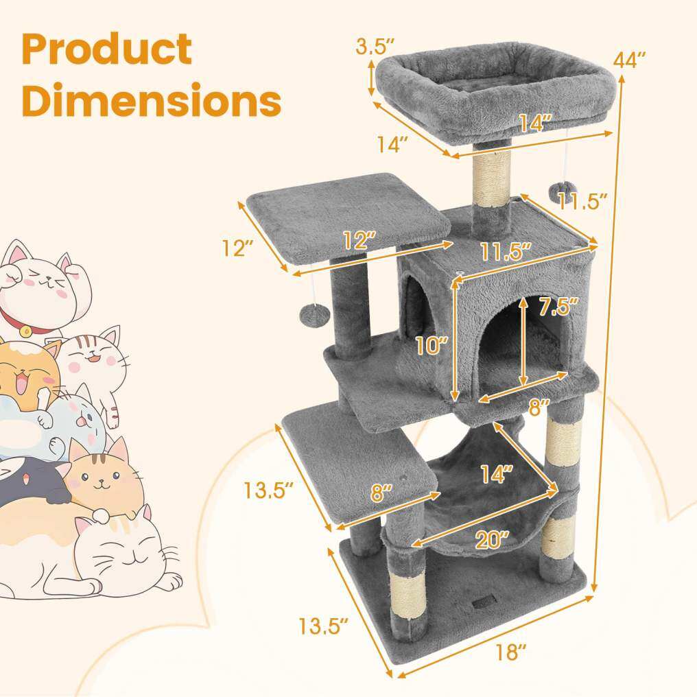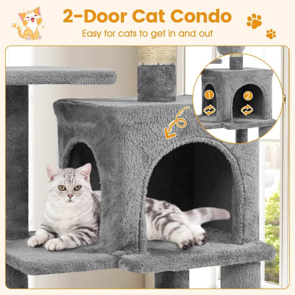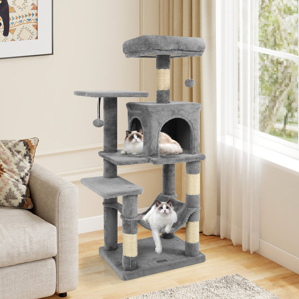 ● More Fun Spots: Featuring multiple climbing platforms, this cat tower satisfies your cat's natural instincts. Plus, a roomy 2-door condo provides a cozy resting place, while a fluffy hammock allows your cat to swing comfortably.