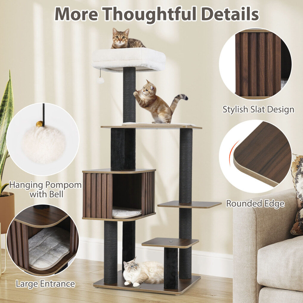 ● Stable Multi-Level Cat Tree: Featuring 6 levels, this cat furniture encourages natural climbing and exploring behaviors, providing endless fun for your cat. Besides, the thickened board and sturdy supporting posts allow cat climb and play safely among multiple platforms.