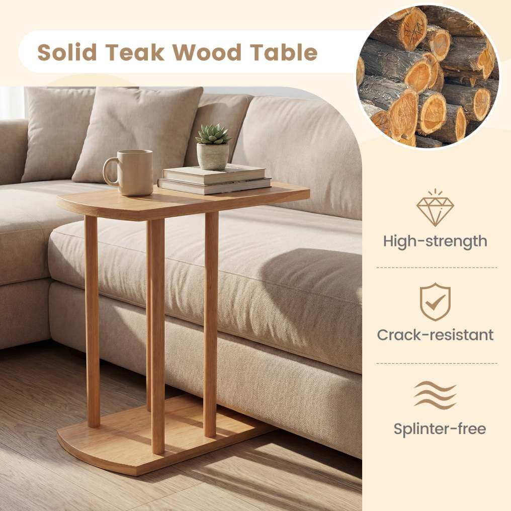 ● Premium Solid Teak Construction: This wood side table for couch is crafted from natural teak wood with rich, warm tones and exceptional durability. It features 4 sturdy support legs for reliable stability and non-slip pads to protect floors and prevent unwanted sliding.