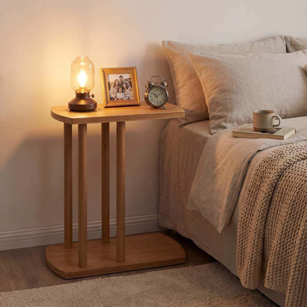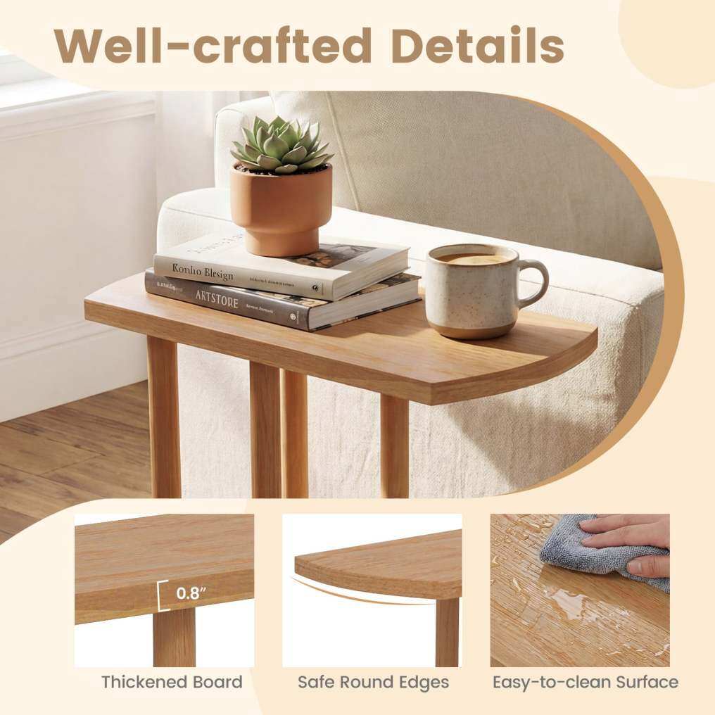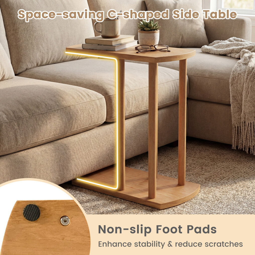● Space-Saving C-Design: This C-shaped side table measures 20" x 9.5" x 21.5", making it ideal for small spaces where every inch counts. Its innovative C-shape slides effortlessly under sofas, beds, or chairs to maximize floor space while keeping essentials within easy reach.