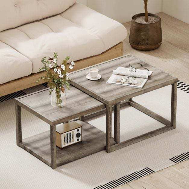 ● Multiple Placement Methods: The coffee tables can be used together for a layered effect or separately to maintain a cohesive look throughout your home. When not in use, the smaller table tucks neatly under the larger one, freeing up valuable floor space.