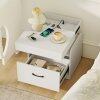 ● Convenient Charging Station: The nightstand has a charging station with 2 power outlets, 1 USB port, and 1 type-C port to keep your devices charged and accessible. The charging area is neatly integrated into the pull-out tray for a clean and organized look.