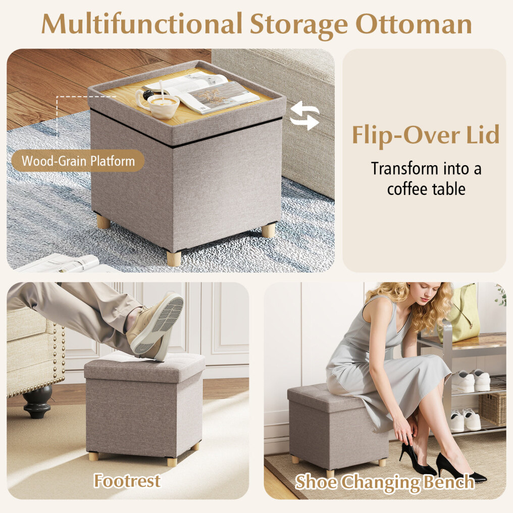 Versatile Flip Top Lid: The footstool’s top lid flips to reveal a wood-grain surface, which is ideal for resting drinks and snacks. Transform it effortlessly into a practical side table/coffee table, enhancing your room’s utility with 1 simple motion.