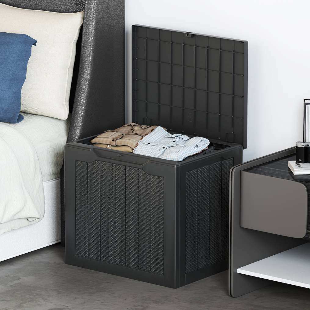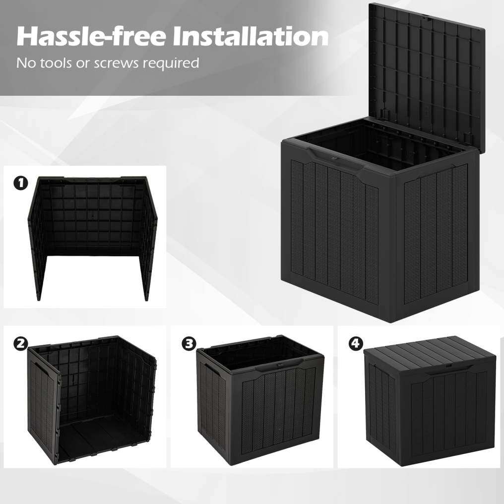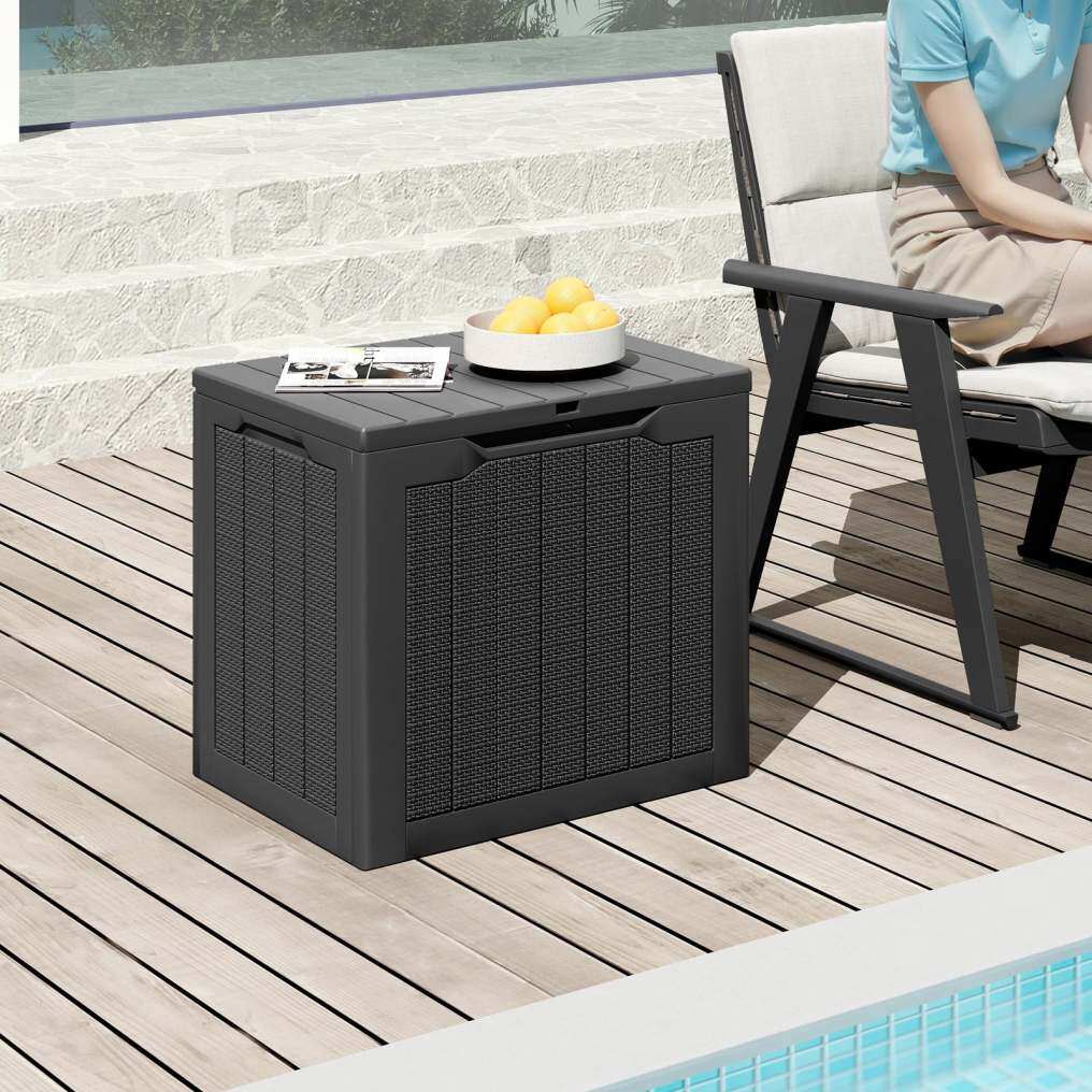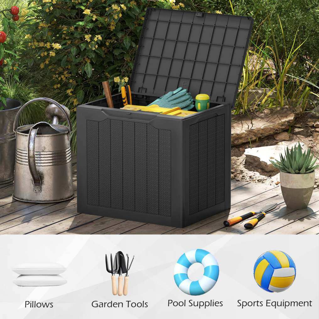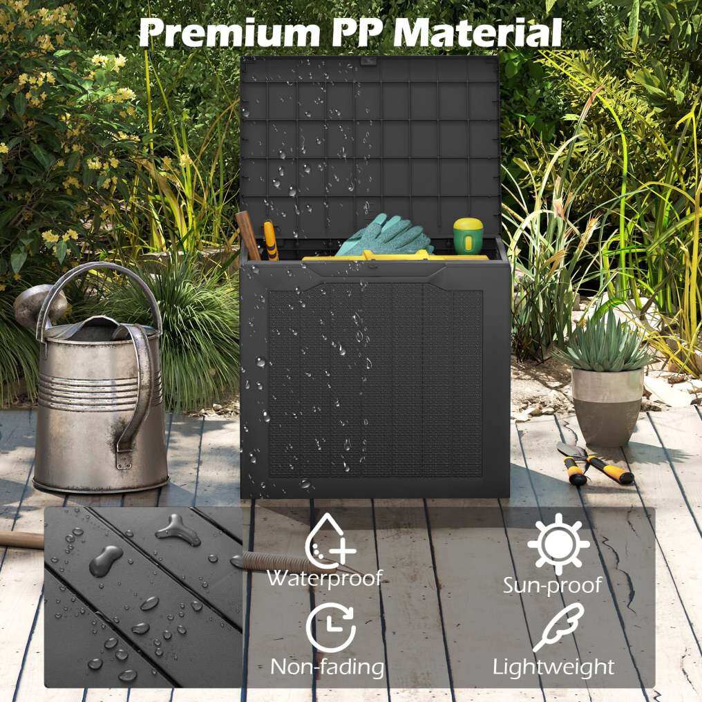 Declutter and beautify your outdoor space with the Patio Storage Box. This versatile box not only serves as a storage solution but also doubles as a sturdy bench or small side table for your outdoor gatherings. Made of weather-resistant PP material, the outdoor storage box is designed to stand the test of time. Additionally, the top opening is lockable (lock required) to ensure the safety of your items. The exquisite wicker texture adds a touch of elegance to your outdoor space, creating a harmonious style. Featuring cutout handles, it's easy to move the box to your desired location. With easy-to-follow instructions, you can assemble this item in no time without tools.