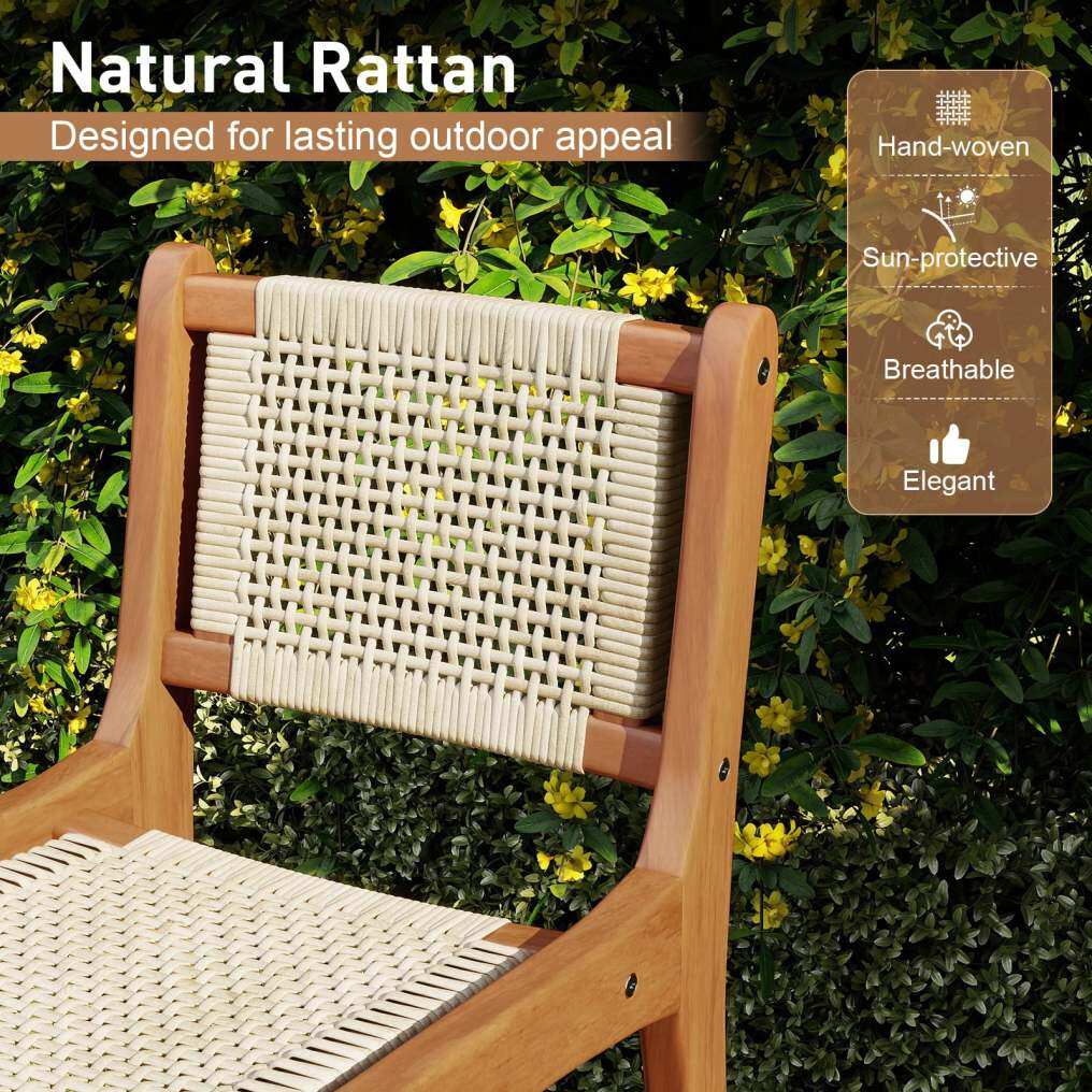 ● Sturdy and Reliable Frame: Crafted with a solid teak wood frame, this woven counter stool supports up to 400 lbs, providing stable and reliable seating for daily use. Moreover, its splinter-free surface ensures a smooth and safe touch.