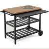 ● Premium Construction: Crafted from a reinforced metal frame with a wood-grain laminated countertop, this cooking cart blends durability and style while resisting cracking and heat damage. Moreover, the non-stick coating of the grill pan simplifies cleanup after each use.