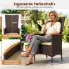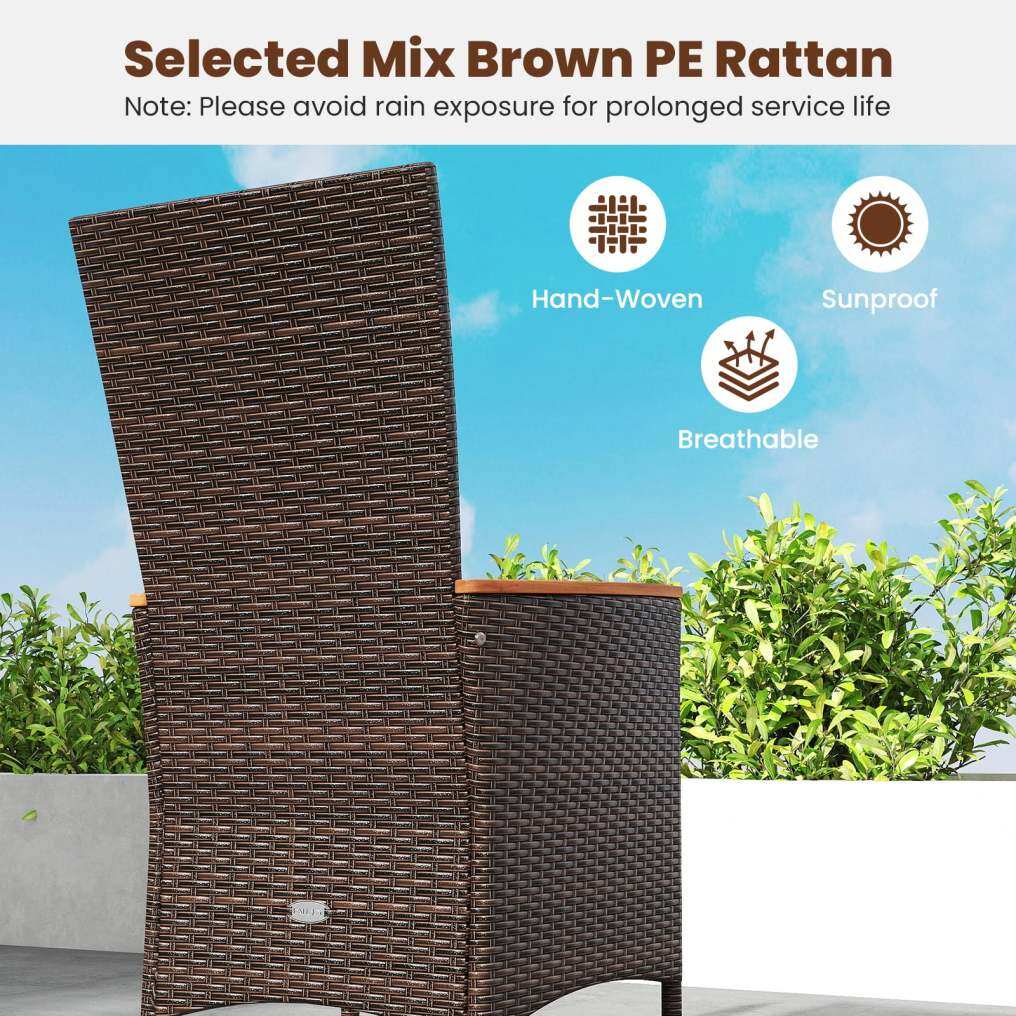 ● Appealing PE Rattan: Each armchair is wrapped in handwoven mixed brown PE rattan, offering excellent sun resistance and breathability. The table edges are also beautifully accented with matching rattan, enhancing the overall aesthetic.