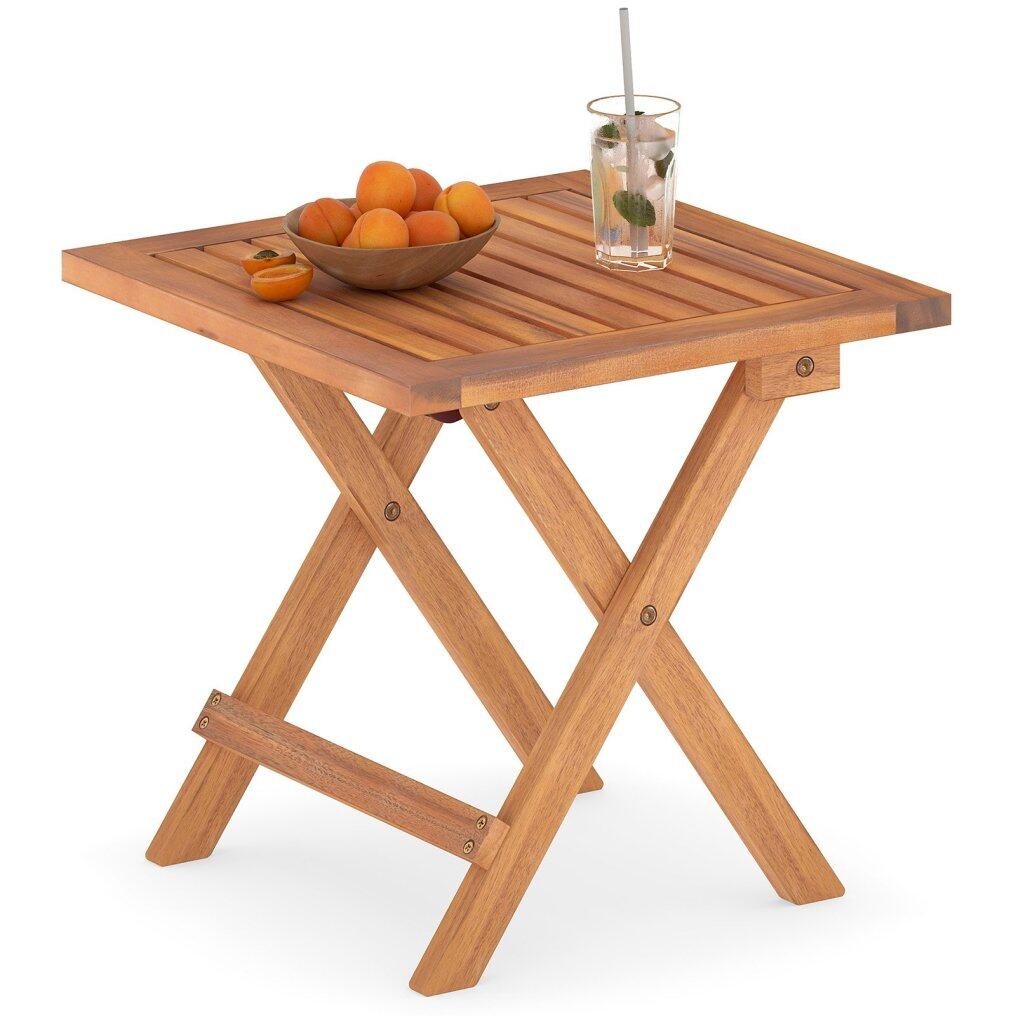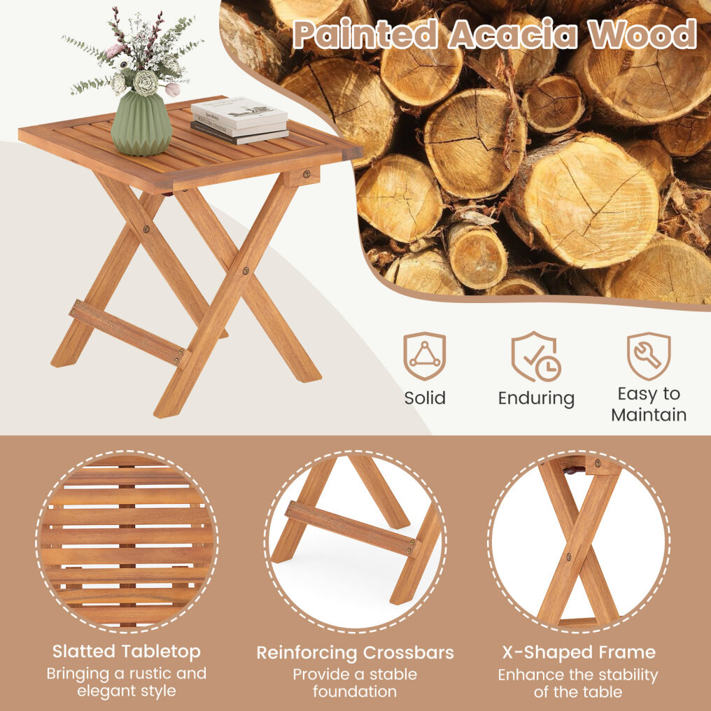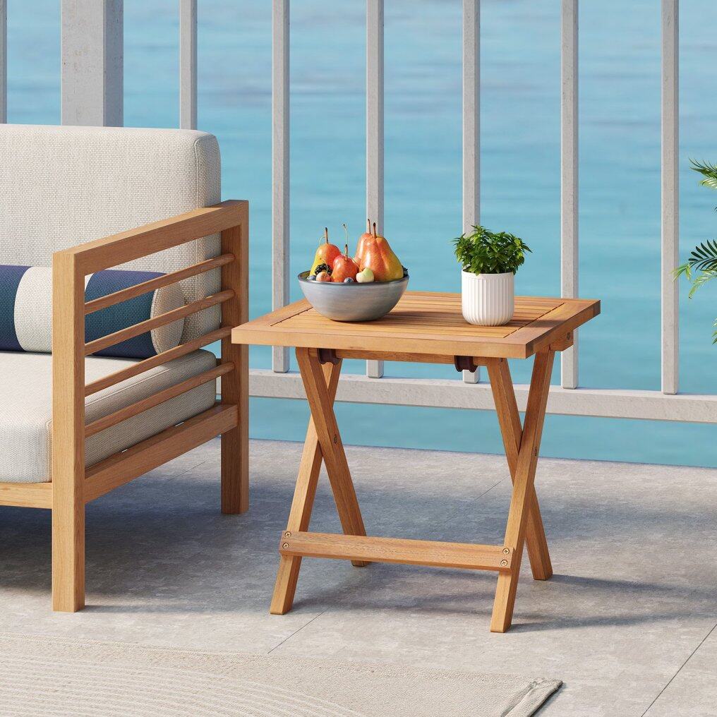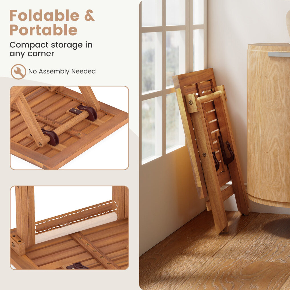 ● Robust Acacia Wood Build: The folding side table is made of natural acacia wood that is renowned for its strength and durability. Supported by reinforced crossbars and X-shaped frames, this piece effortlessly holds up to 165 lbs.