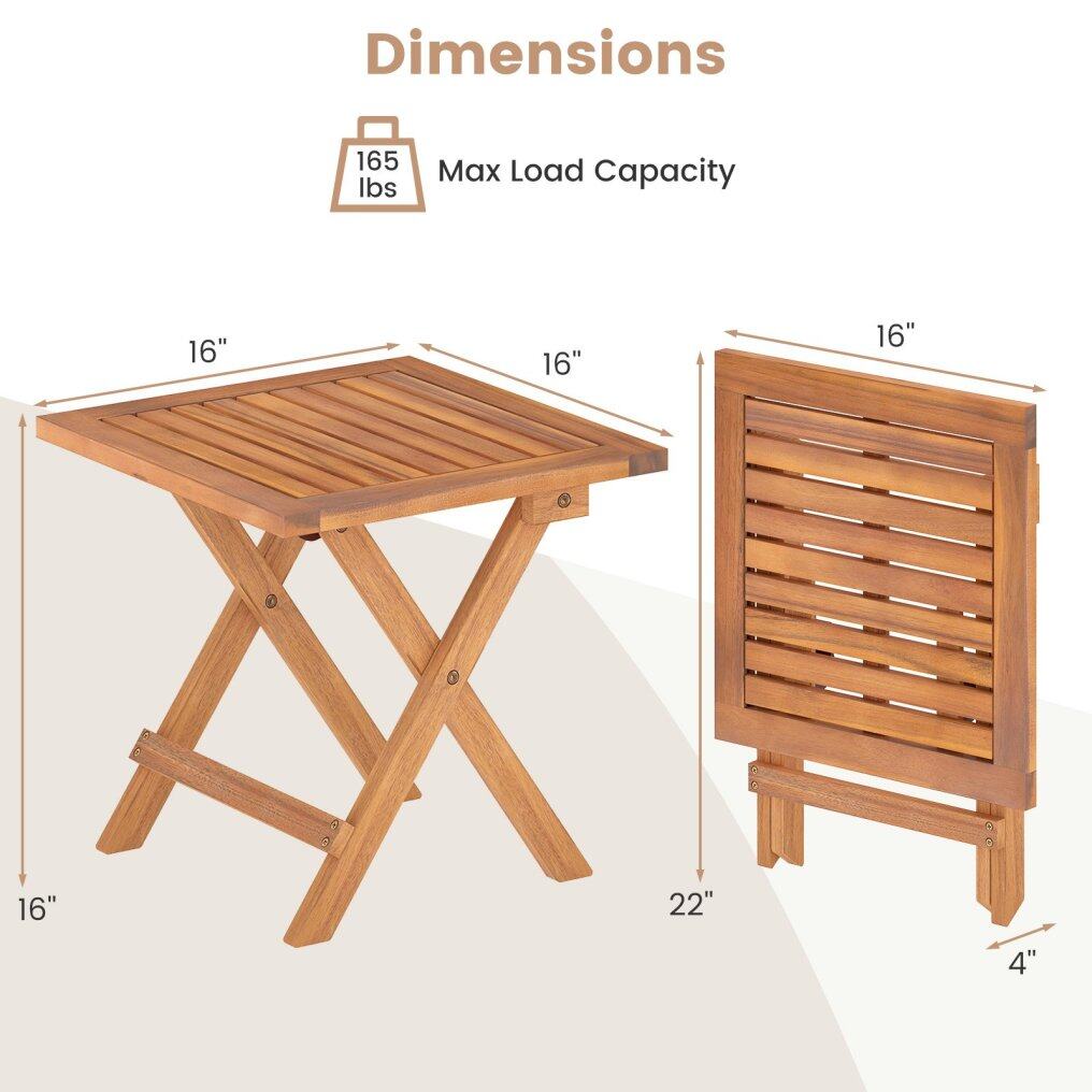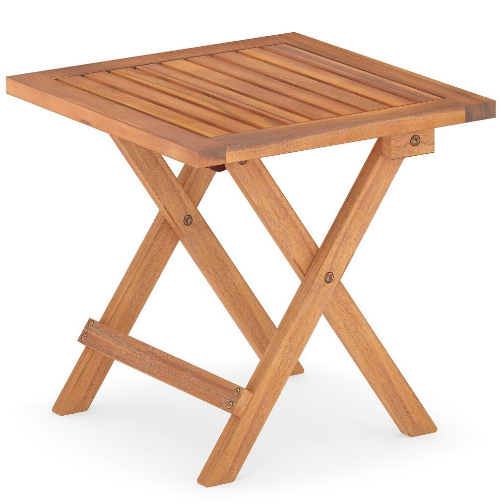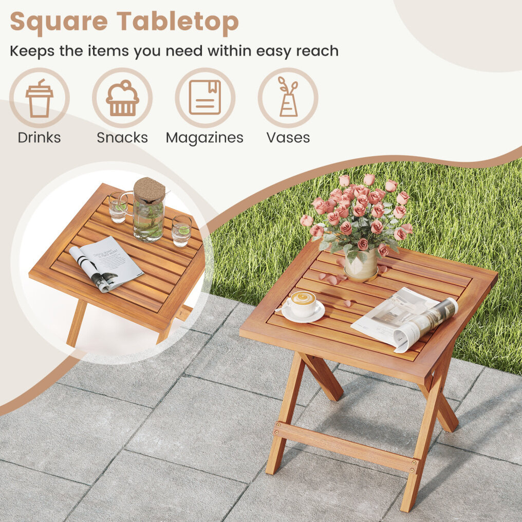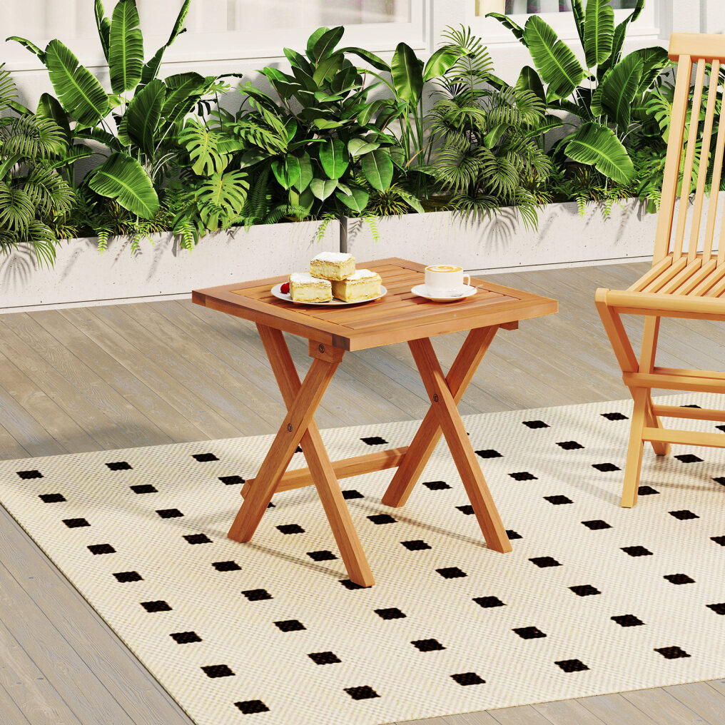 ● Robust Acacia Wood Build: The folding side table is made of natural acacia wood that is renowned for its strength and durability. Supported by reinforced crossbars and X-shaped frames, this piece effortlessly holds up to 165 lbs.