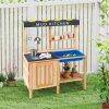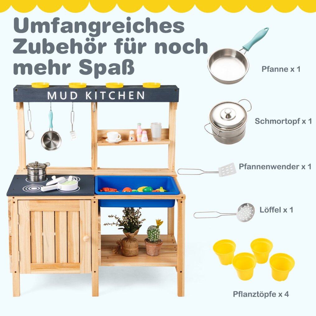 Imaginative play: This outdoor mud kitchen for kids features a large mud table station where children can mix mud and twigs and unleash their imaginations outdoors. It offers a decorative hotplate for the dry area and a removable sink for the wet area.