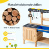 Take outdoor play to the next level by equipping your outdoor space with a mud kitchen! This kids' kitchen inspires creativity and promotes learning through play. Made of solid and durable pine and fir wood, this outdoor kitchen will accompany your children ages 3 to 8. With four stainless steel kitchen utensils and four plastic cups, this play kitchen offers your children endless fun. Your little chefs can mix mud and twigs on the stove stencils, bake them in the oven, and store the finished mud products on the lower shelf.