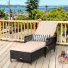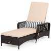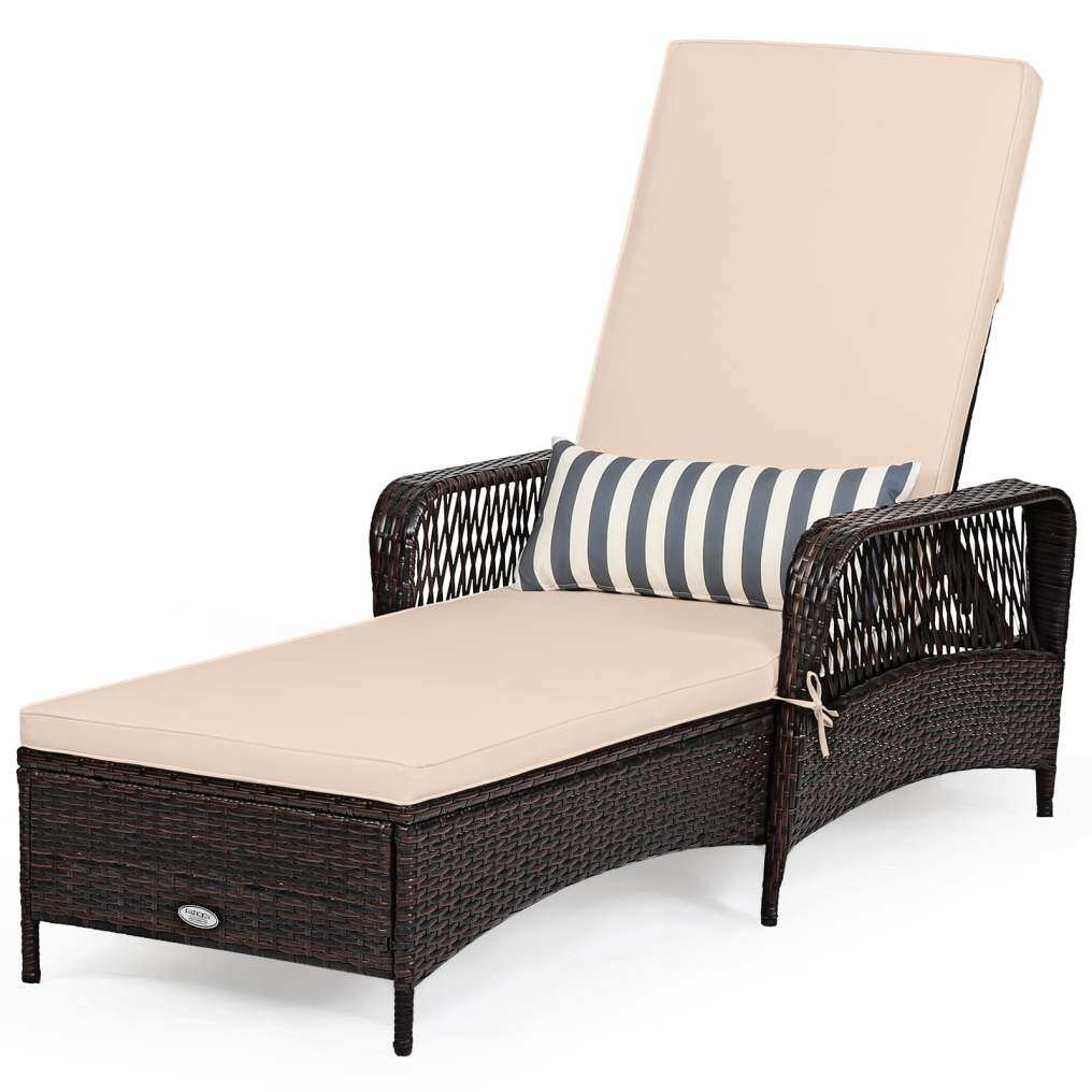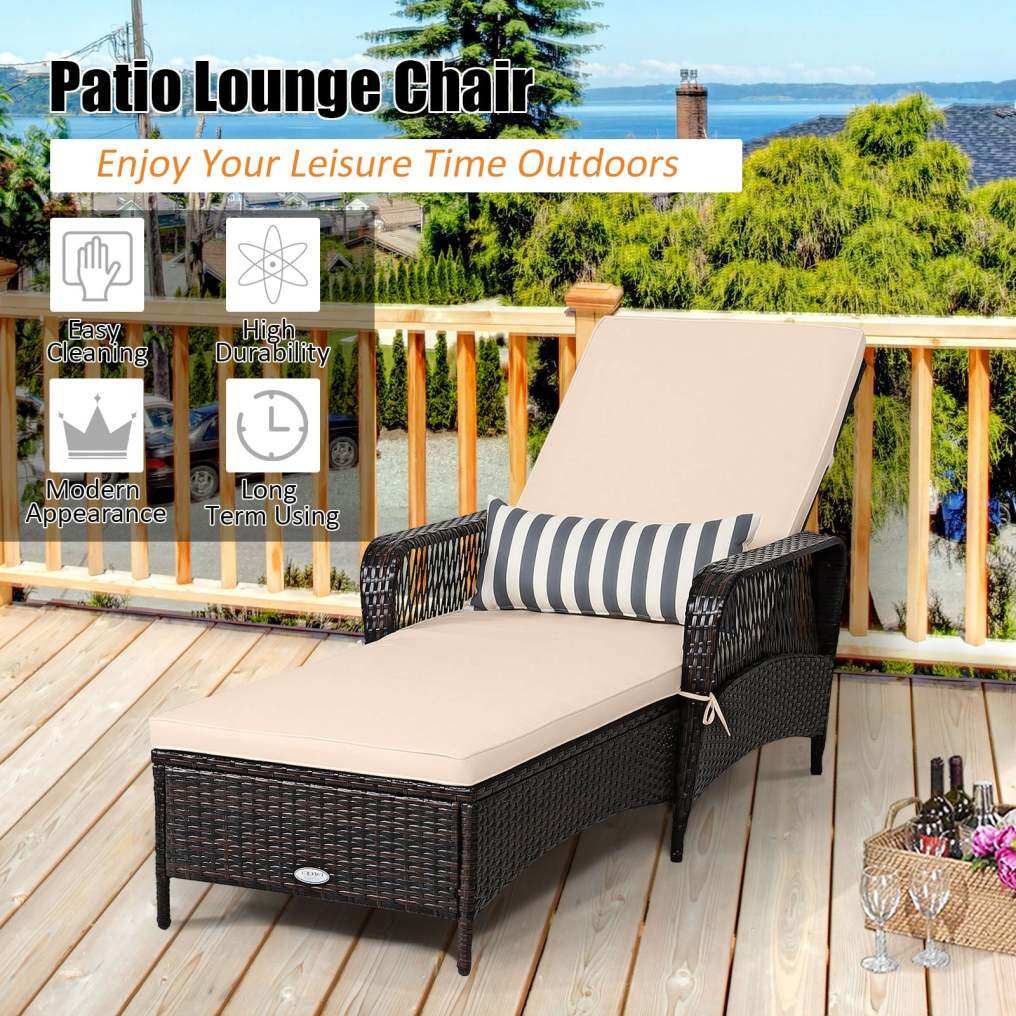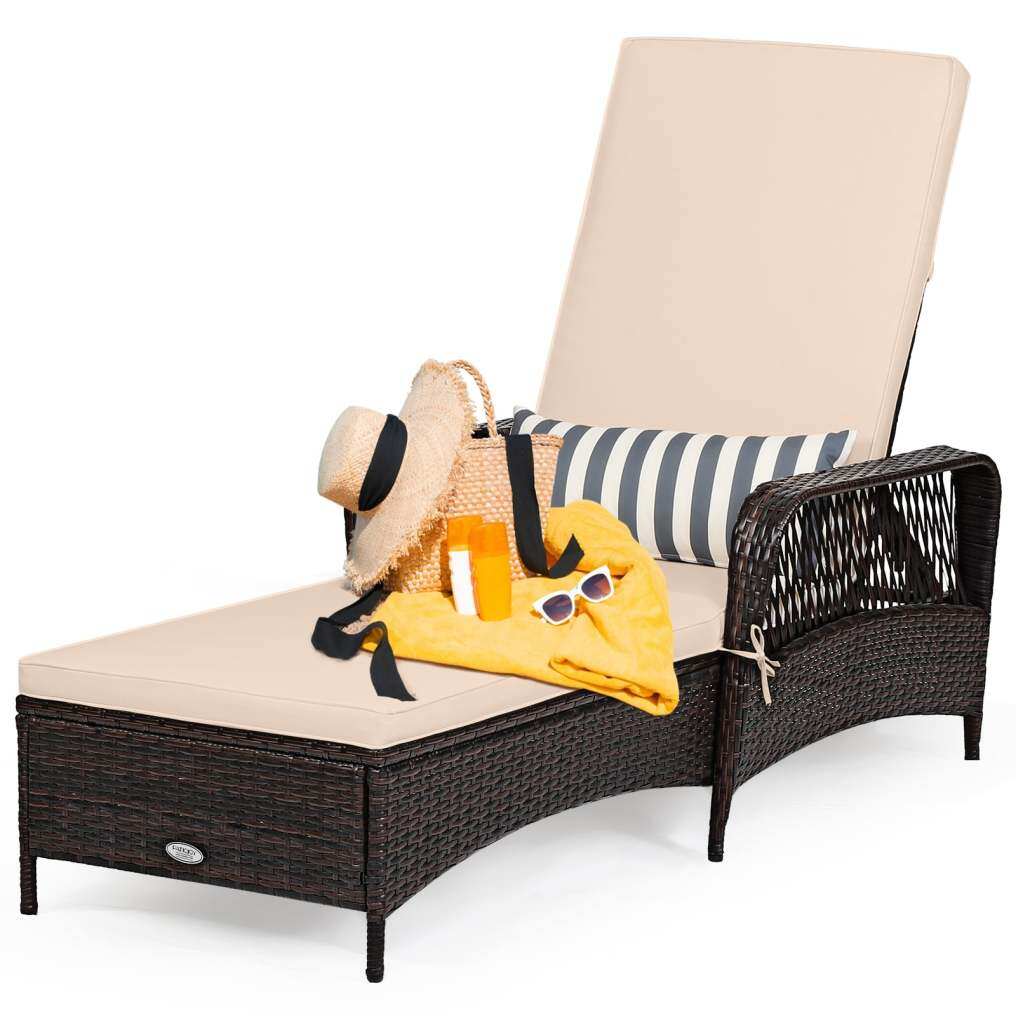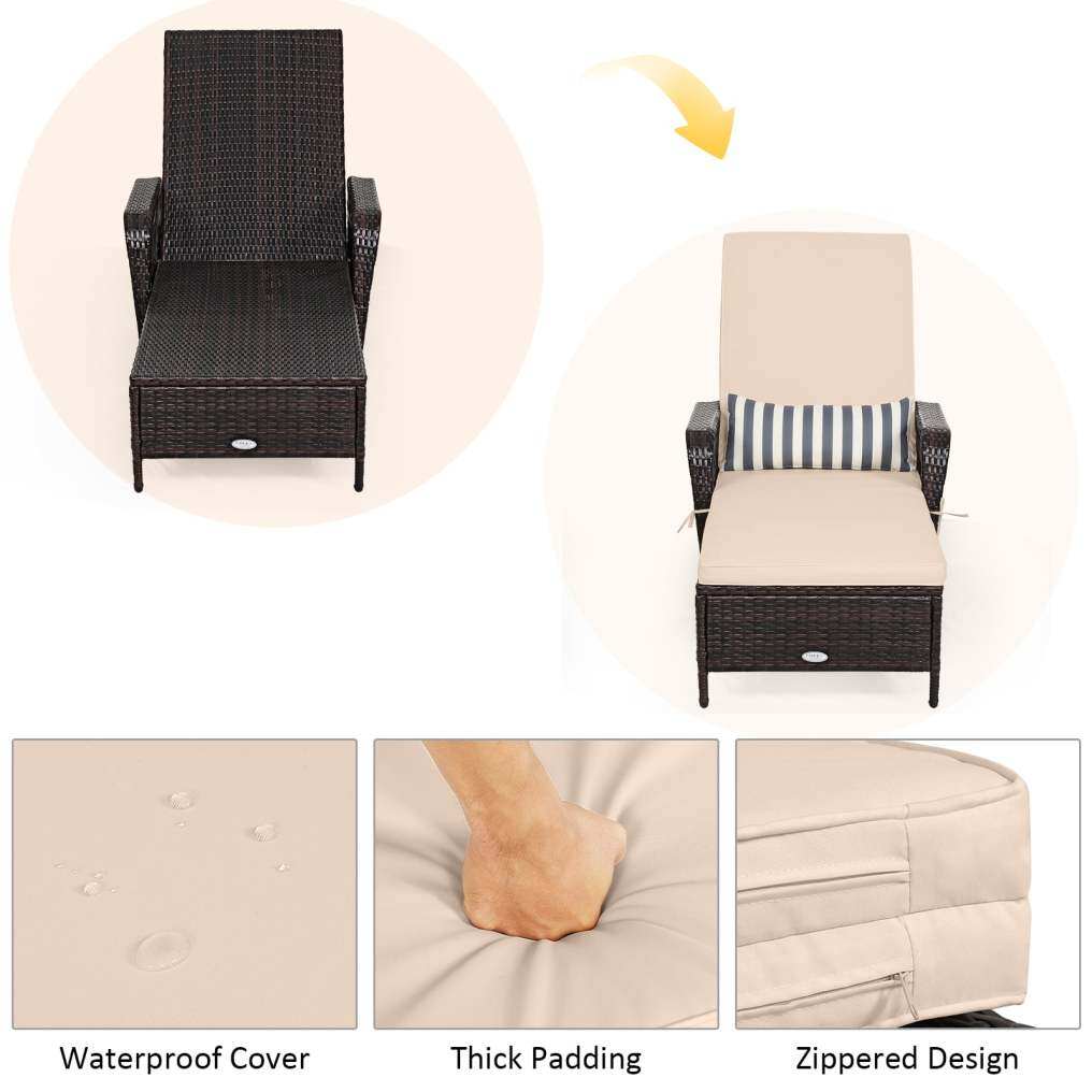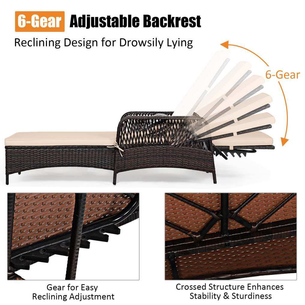 ● 6-Gear Adjustable Backrest: With its adjustable backrest that can be set in six different reclining positions, this outdoor wicker chaise can function as different furniture to meet various needs. You can sit on to read or chat with your friends, lean against it to admire the view, or lay down for a nap or sunbathe.