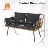 ● Spacious and Ergonomic Bench: The patio rattan sofa provides a generous 46.5" wide seat that comfortably seats up to 2 for shared relaxation. Furthermore, the cozy armrests and a 108° inclined backrest offer superior ergonomic support.
